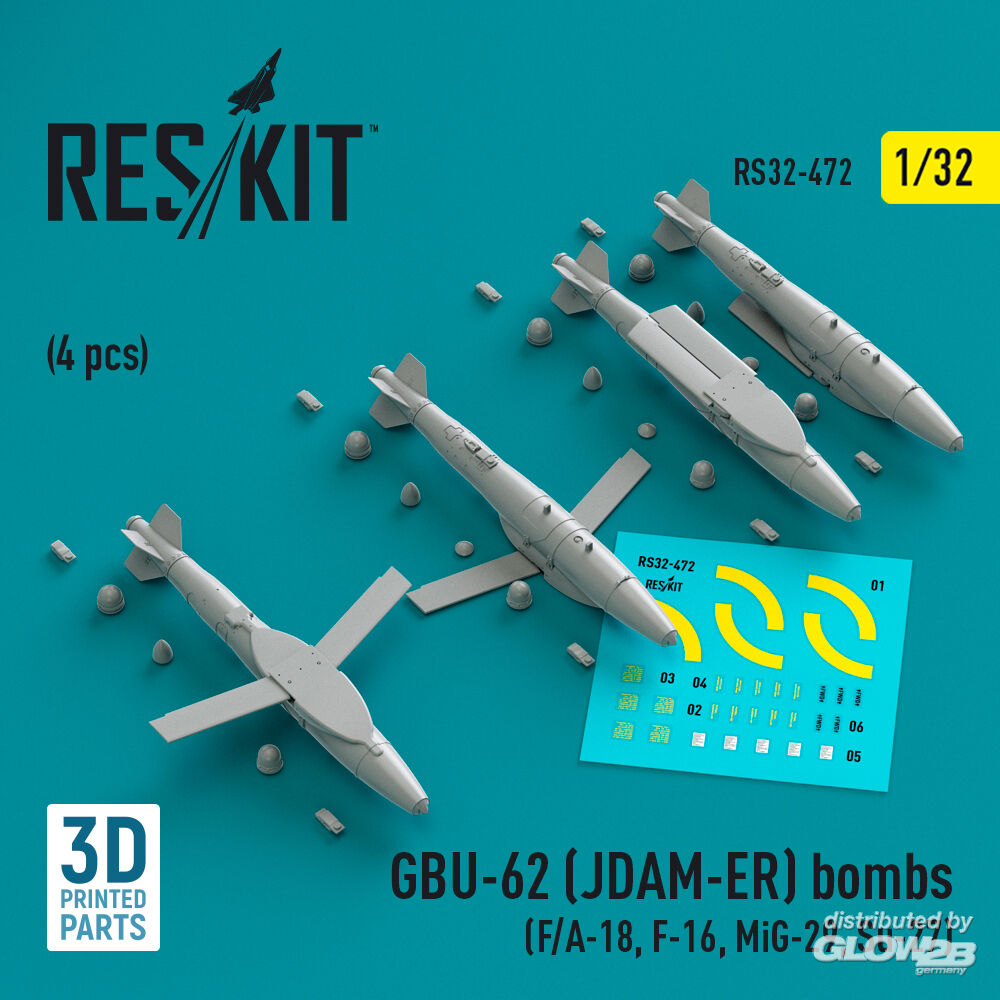 ResKit Models: GBU-62 (JDAM-ER) bombs (4 pcs) (F/A-18, F-16, MiG-29, Su-27) (3D Printed) in 1:32 [4593104725]