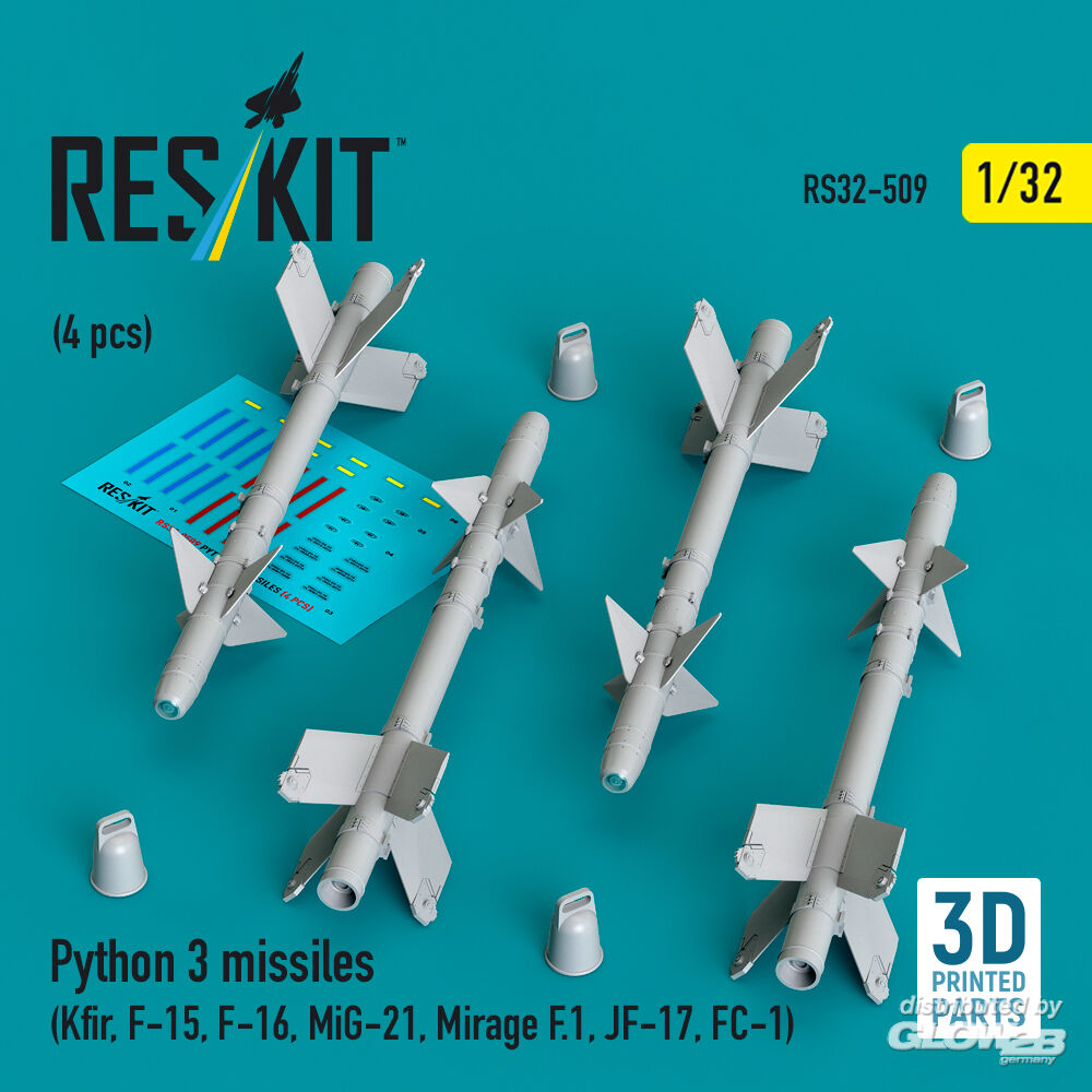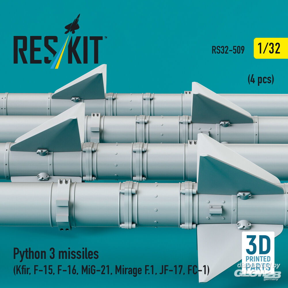 ResKit Models: Python 3 missiles (4 pcs) (Kfir, F-15, F-16, MiG-21, Mirage F.1, JF-17, FC-1) (3D Printed) in 1:32 [4593105098]