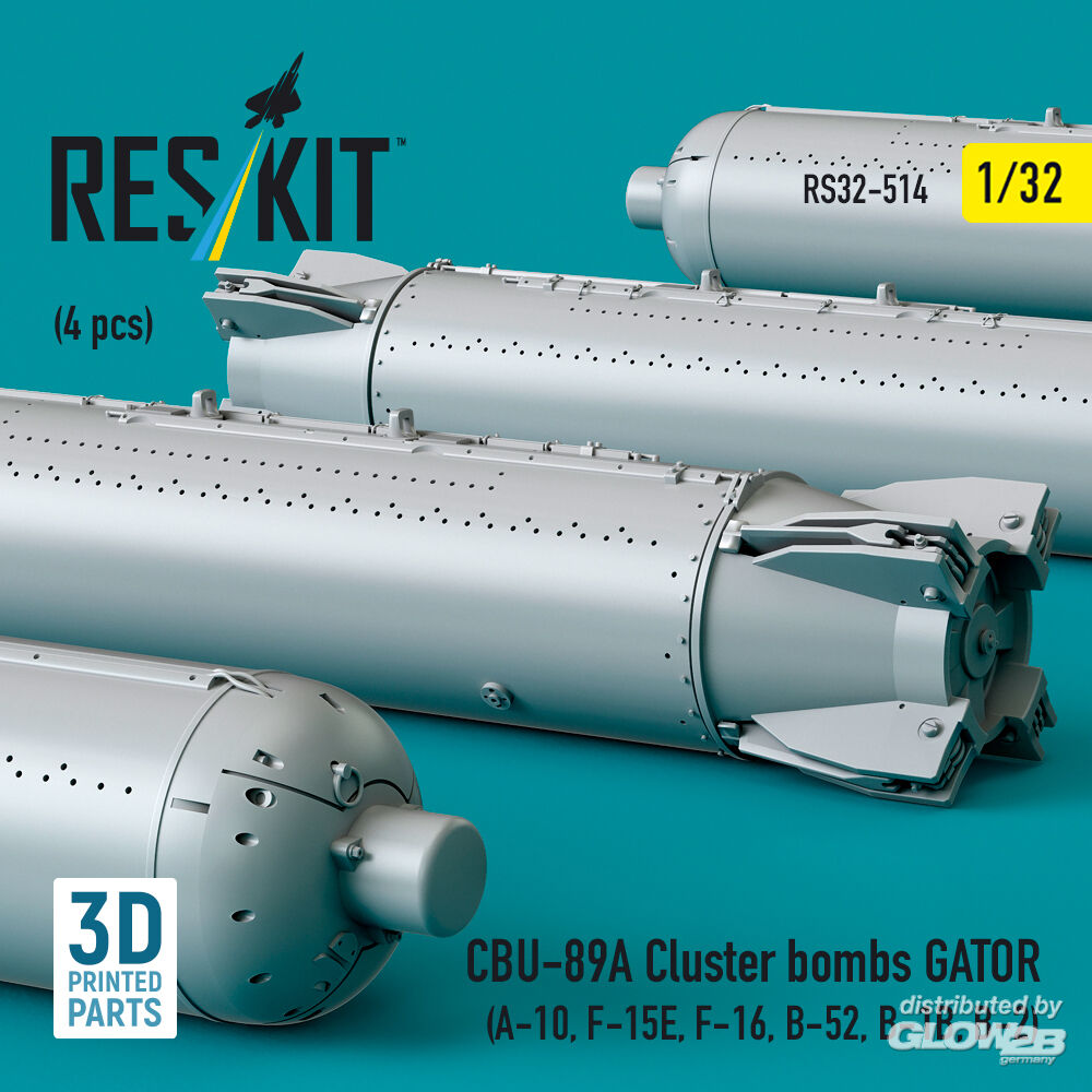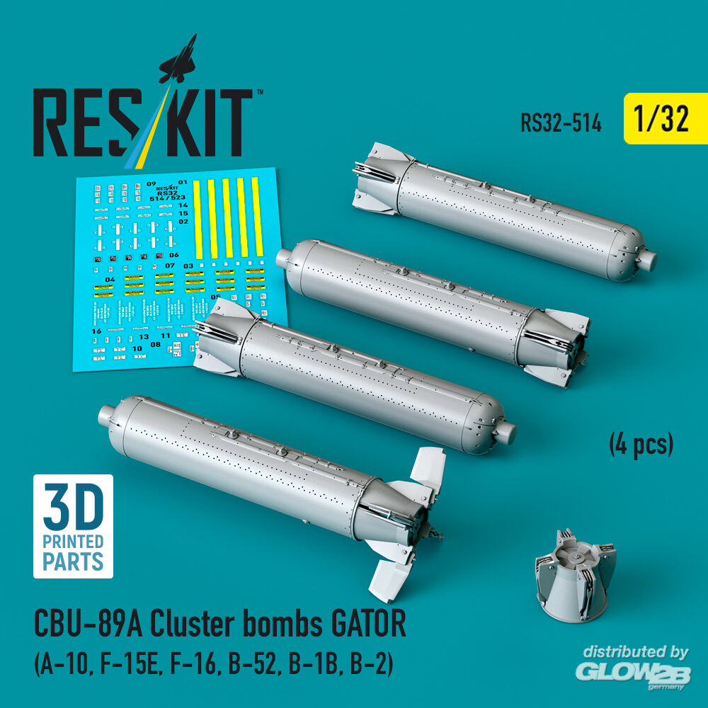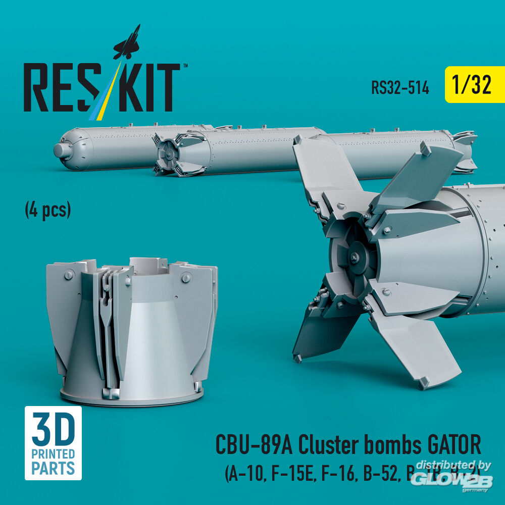 ResKit Models: CBU-89A cluster bombs GATOR (4 pcs) (A-10, F-15E, F-16, B-52, B-1B, B-2) (3D Printed) in 1:32 [4593105142]