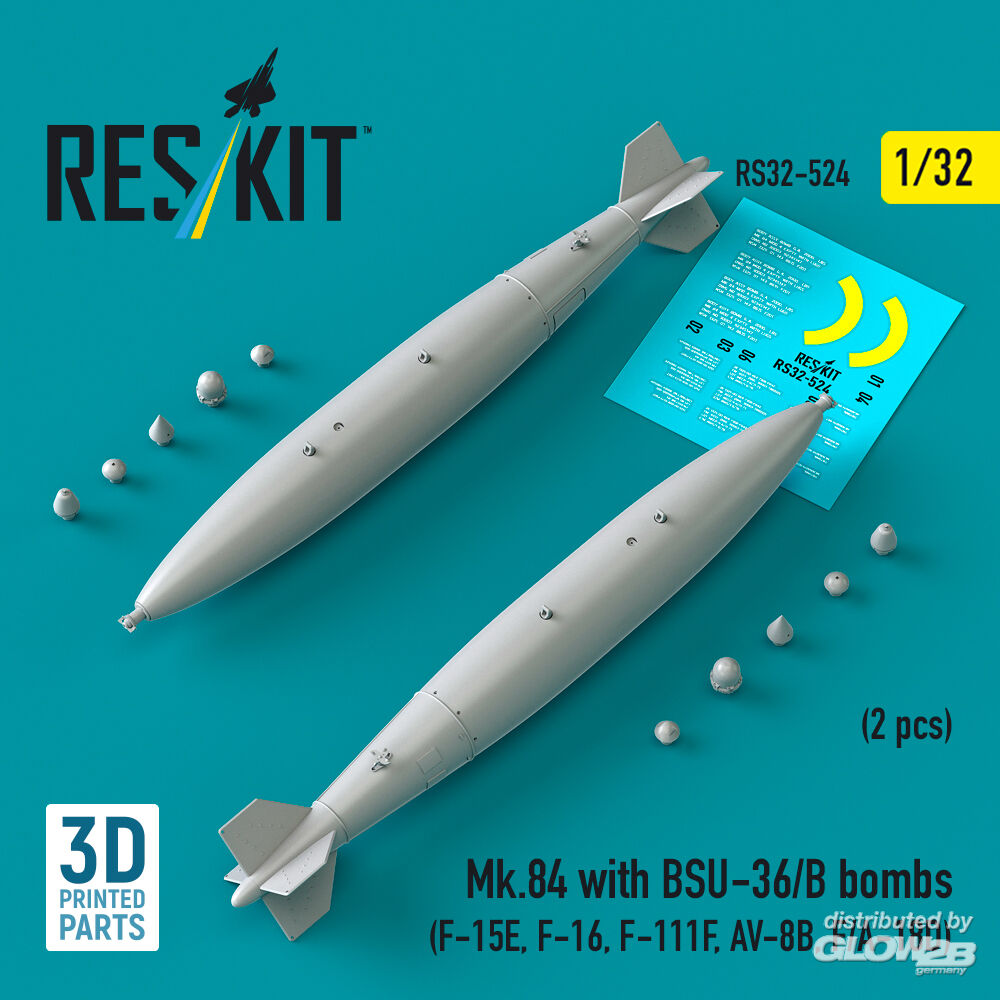 ResKit Models: Mk.84 with BSU-36/B bombs (2 pcs) (F-15E, F-16, F-111F, AV-8B, F/A-18D) (3D Printed) in 1:32 [4593105241]