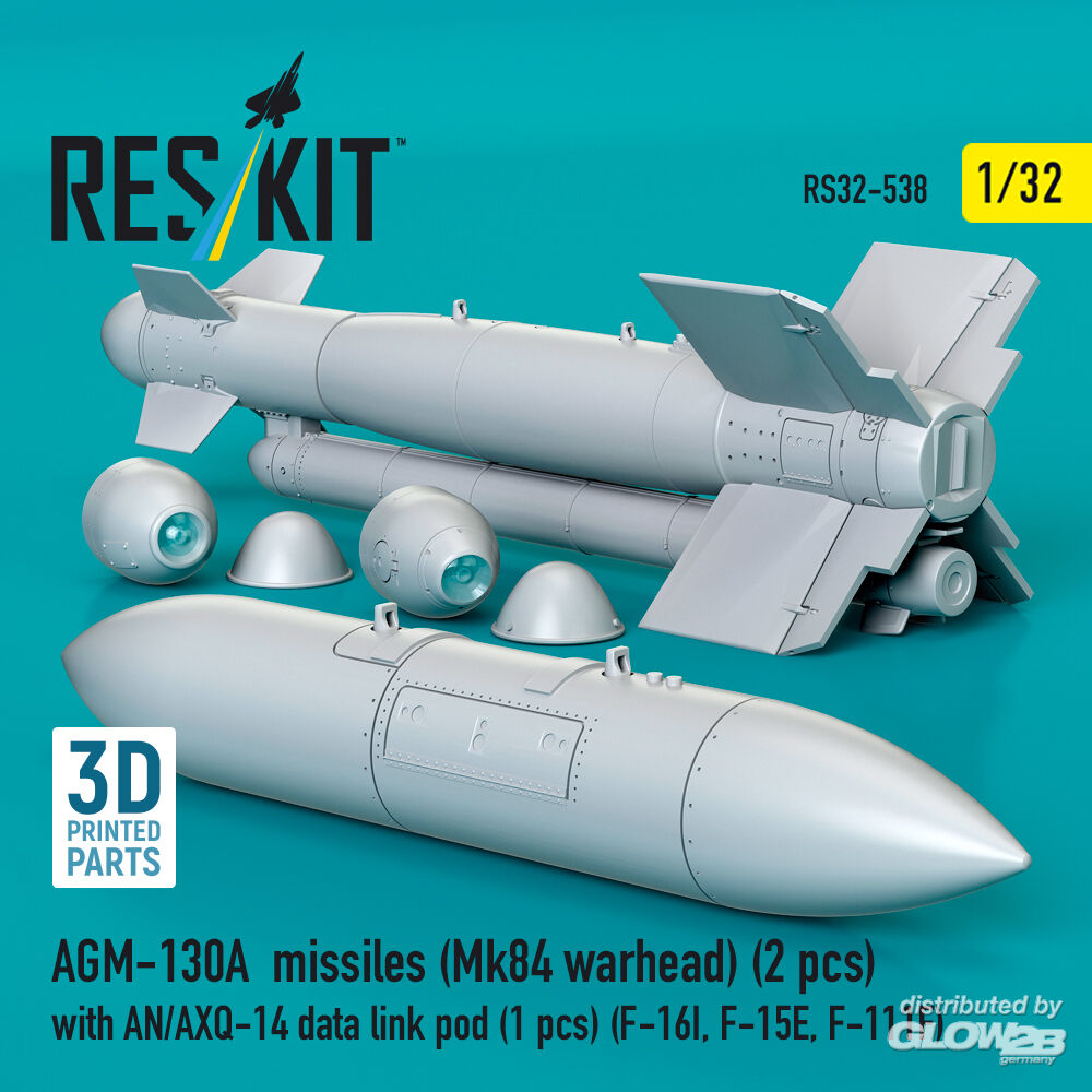 ResKit Models: AGM-130A missiles (Mk84 warhead) (2 pcs) with AN/AXQ-14 data link pod (1 pcs) (F-16I, F-15E, F-111F) (3D Printed) in 1:32 [4593105388]
