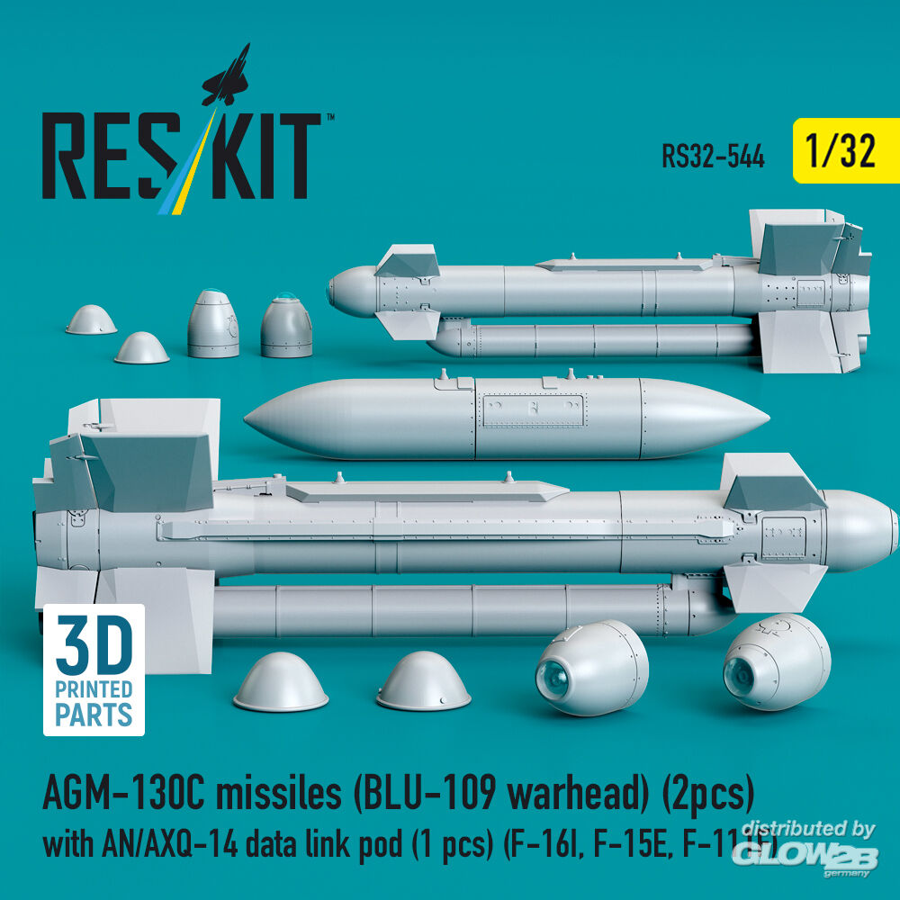ResKit Models: AGM-130C missiles (BLU-109 warhead) (2 pcs) with AN/AXQ-14 data link pod (1 pcs) (F-16I, F-15E, F-111F) (3D Printed) in 1:32 [4593105449]