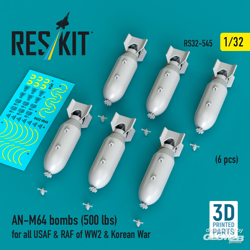 ResKit Models: AN-M64 bombs (500 lbs) for all USAF & RAF of WW2 & Korean War (6 pcs) (3D Printed) in 1:32 [4593105456]