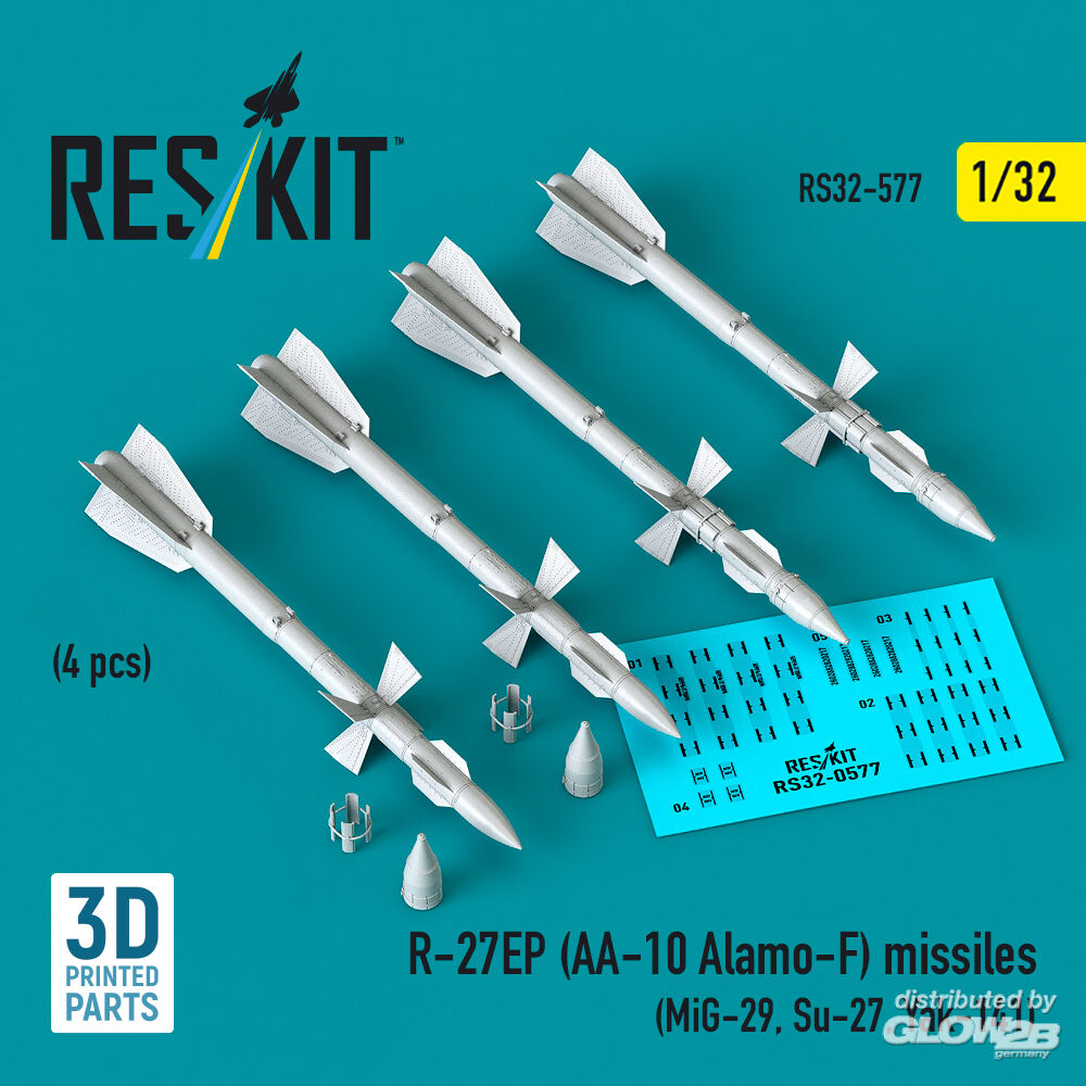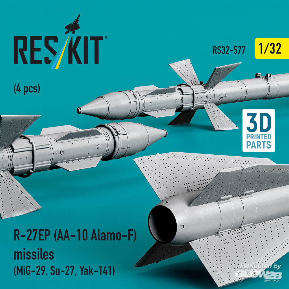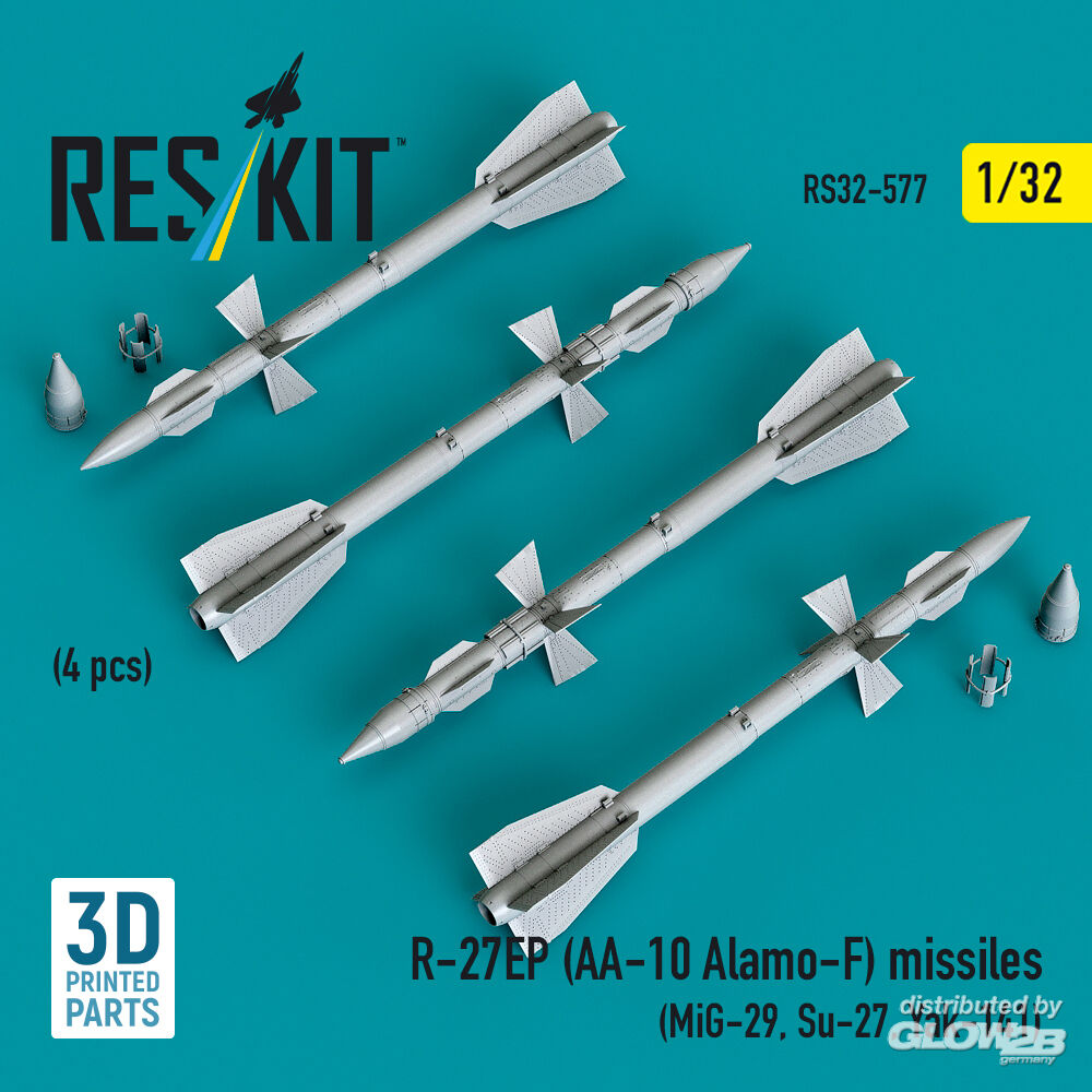 ResKit Models: R-27EP (AA-10 Alamo-F) missiles (4 pcs) (MiG-29, Su-27, Yak-141) (3D Printed) in 1:32 [4593105777]