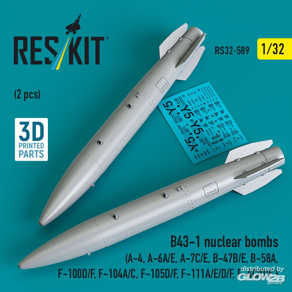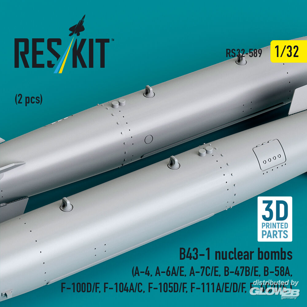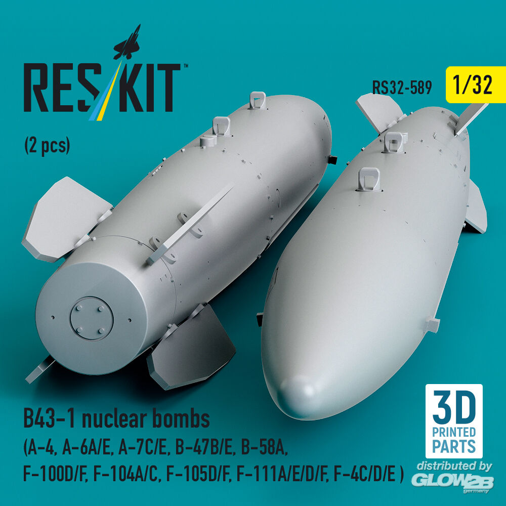 ResKit Models: B43-1 nuclear bombs (2 pcs) (A-4, A-6A/E, A-7C/E, B-47B/E, B-58A, F-100D/F, F-104A/C, F-105D/F, F-111A/D/E/F, F-4C/D/E ) (3D Printed) in 1:32 [4593105890]