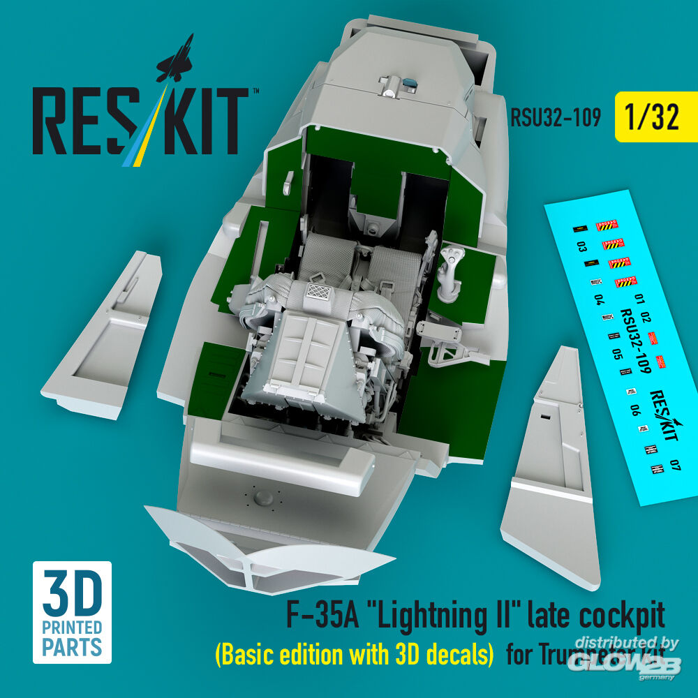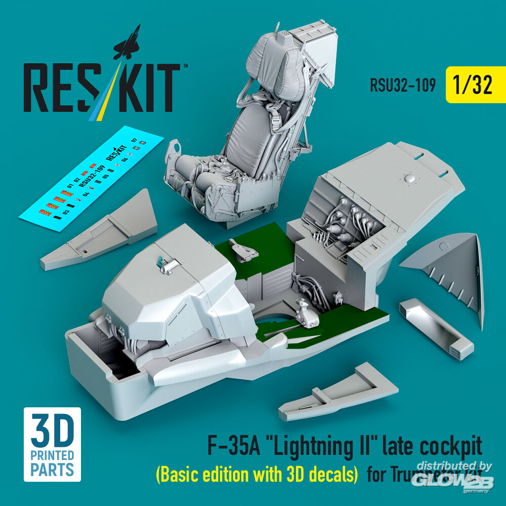 ResKit Models: F-35A Lightning II late cockpit (Basic edition with 3D decals) for Trumpeter kit (3D Printed) in 1:32 [4593201097]