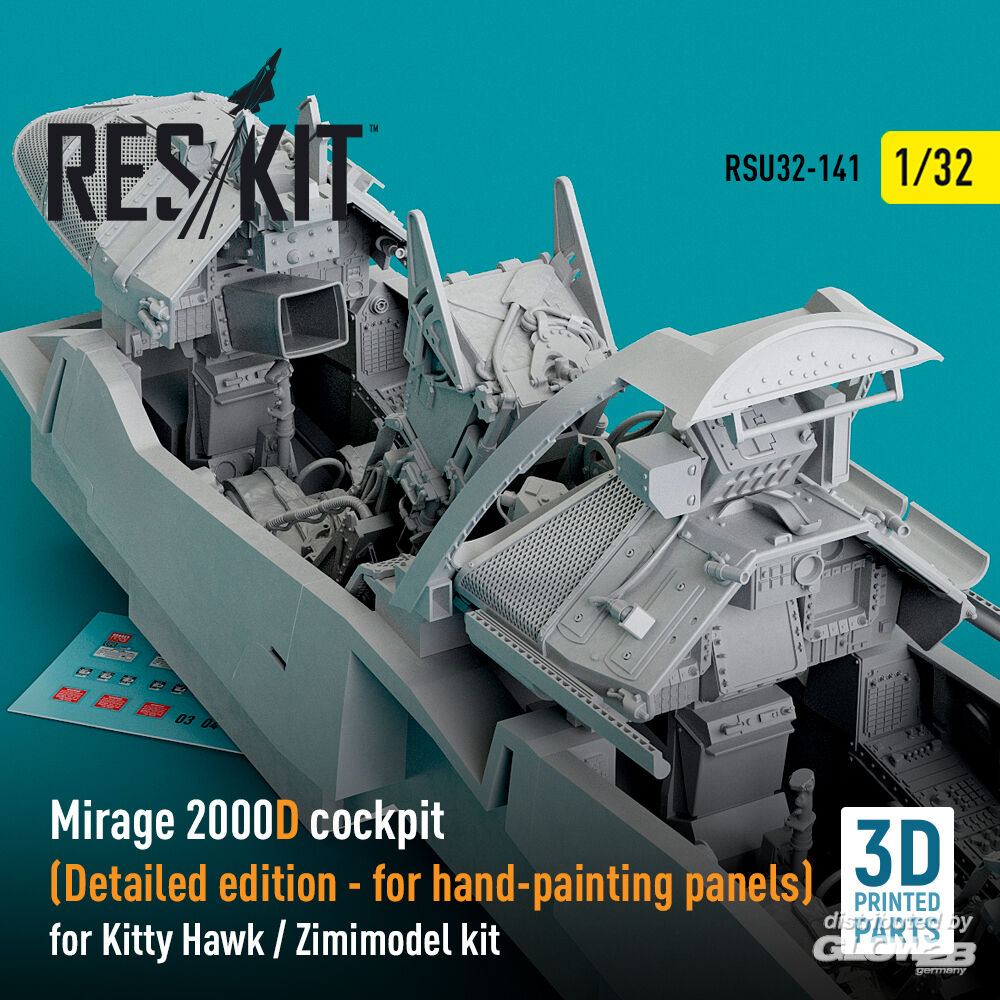 ResKit Models: Mirage 2000D cockpit (Detailed edition) for Kitty Hawk / Zimimodel kit (3D Printed) in 1:32 [4593201417]