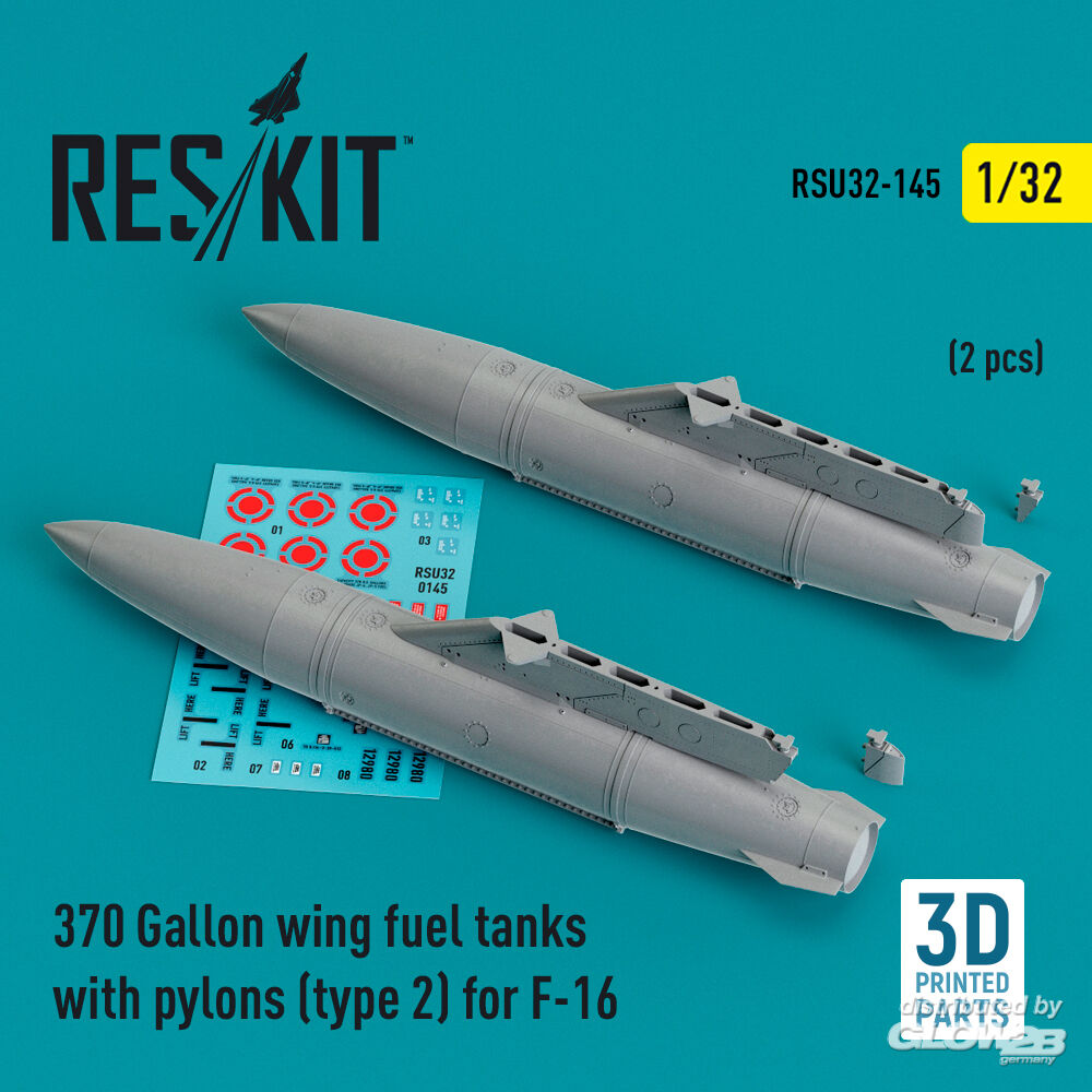 ResKit Models: 370 Gallon wing fuel tanks with pylons (type 2) for F-16 (A/B/C/D/E/F/I) (2 pcs) (3D Printed) in 1:32 [4593201455]