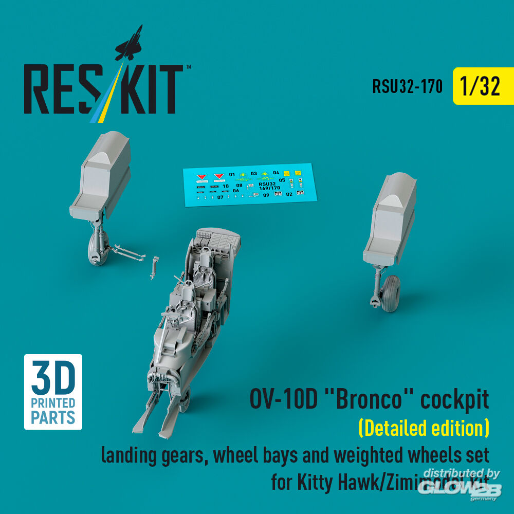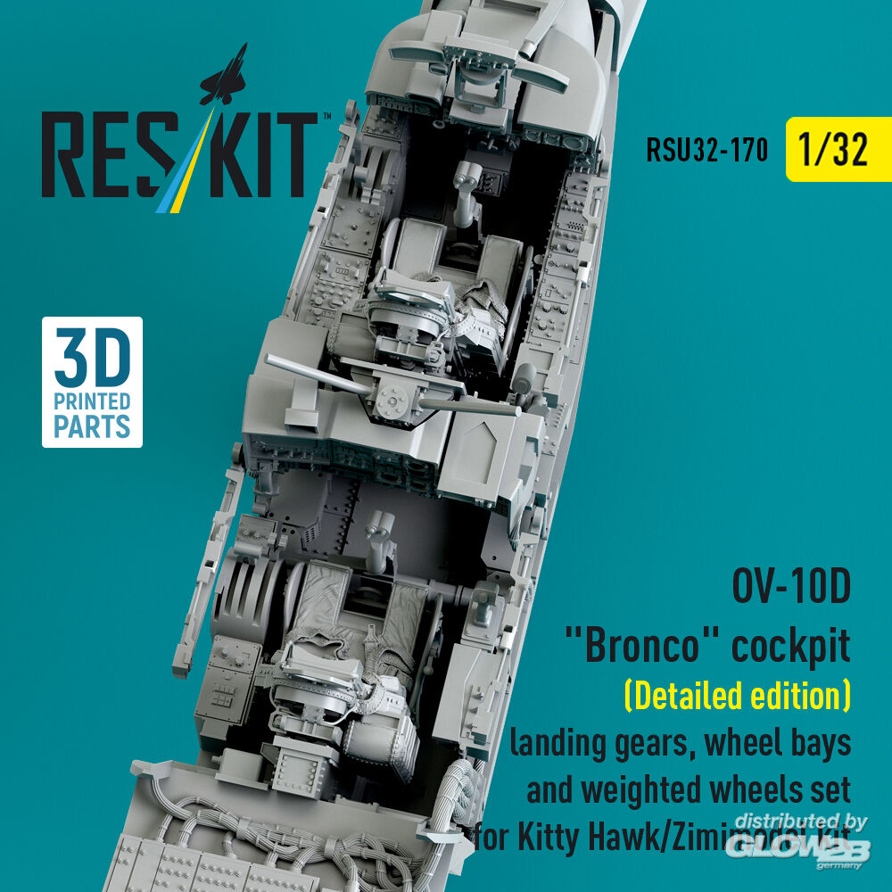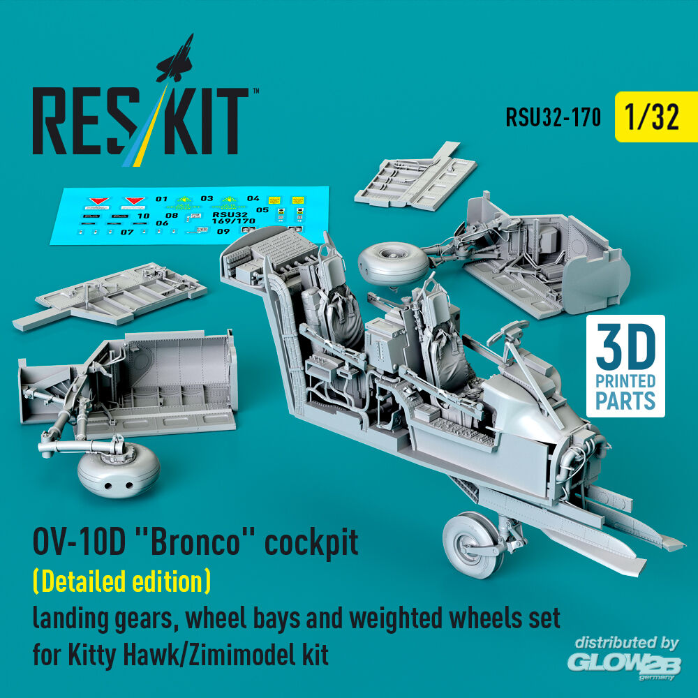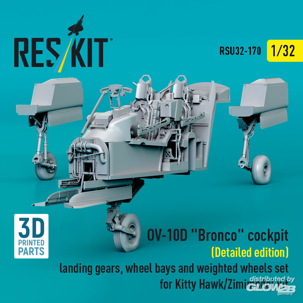 ResKit Models: OV-10D Bronco cockpit (Detailed edition) landing gears, wheel bays and weighted wheels set for Kitty Hawk/Zimimodel kit (3D Printed) in 1:32 [4593201707]