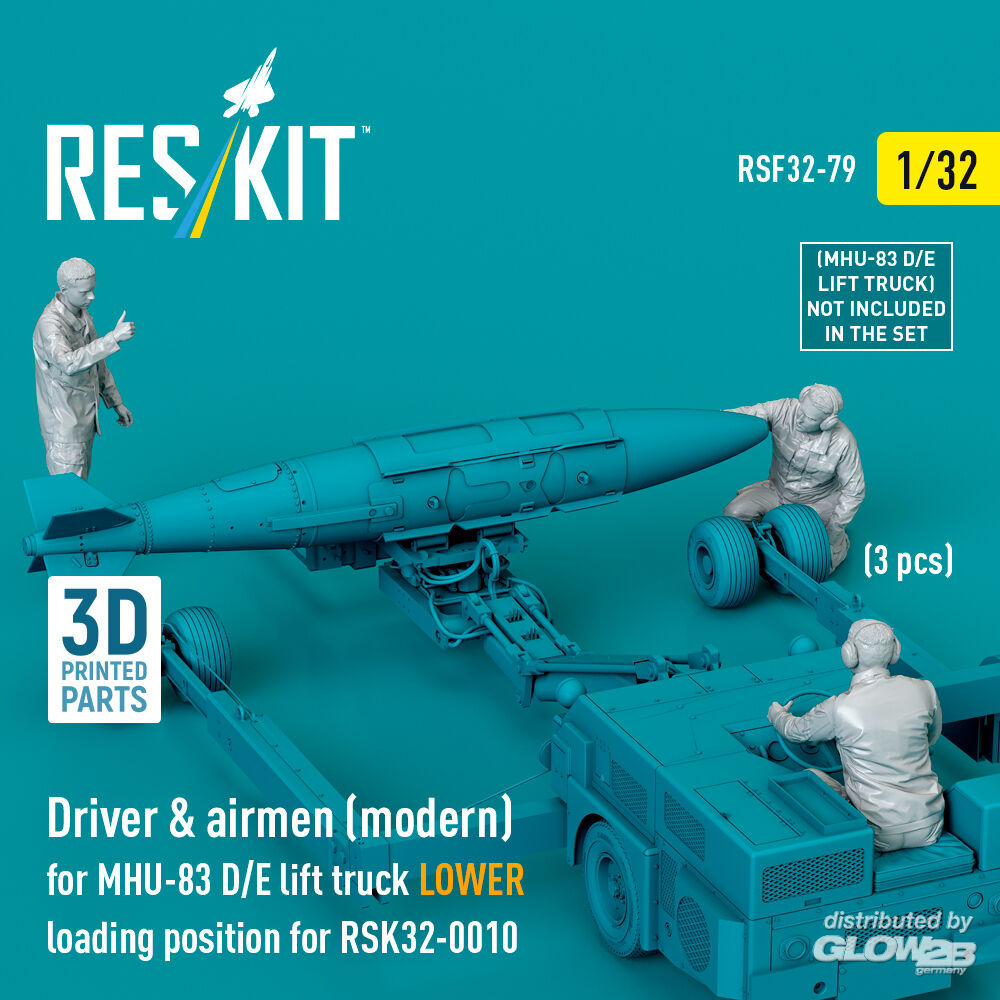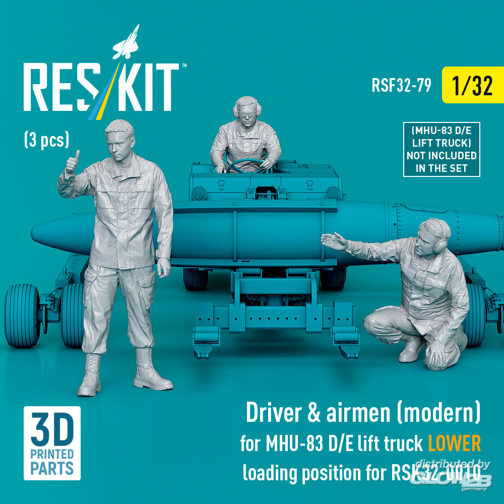 ResKit Models: Driver & airmen (modern) (3 pcs) (MHU-83 D/E lift truck LOWER loading position for RSK32-0010) (3D Printed) in 1:32 [4593400797]