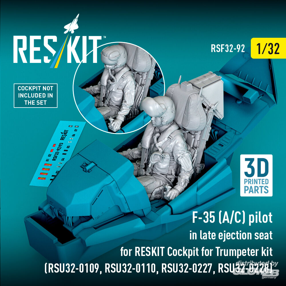 ResKit Models: F-35 (A/C) pilot in late ejection seat for RESKIT Cockpit for Trumpeter kit (RSU32-0109, RSU32-0110, RSU32-0227, RSU32-0228) (3D Printed) in 1:32 [4593400926]
