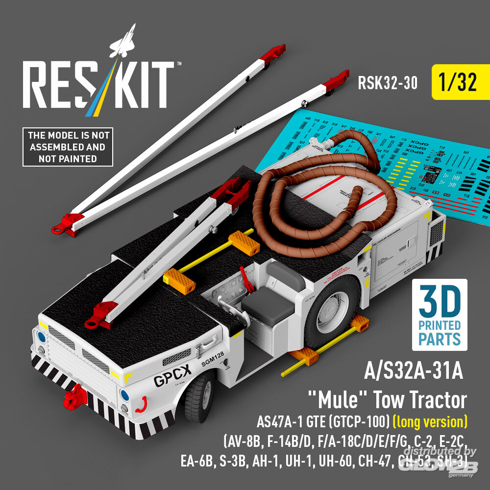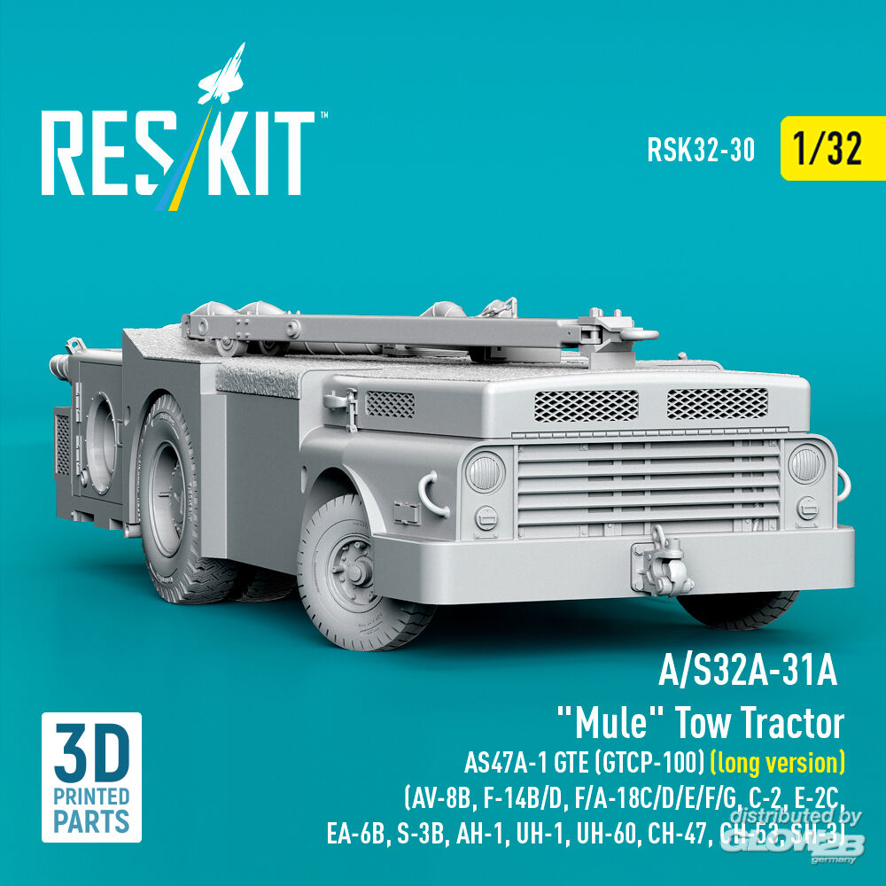 ResKit Models: A/S32A-31A Mule Tow Tractor AS47A-1 GTE (GTCP-100) (long version) (AV-8B, F-14B/D, F/A-18C/D/E/F/G, C-2, E-2?, EA-6B, S-3B, AH-1, UH-1, UH-60, CH-47, CH-53, SH-3) (3D Printed model kit) in 1:32 [4593700309]