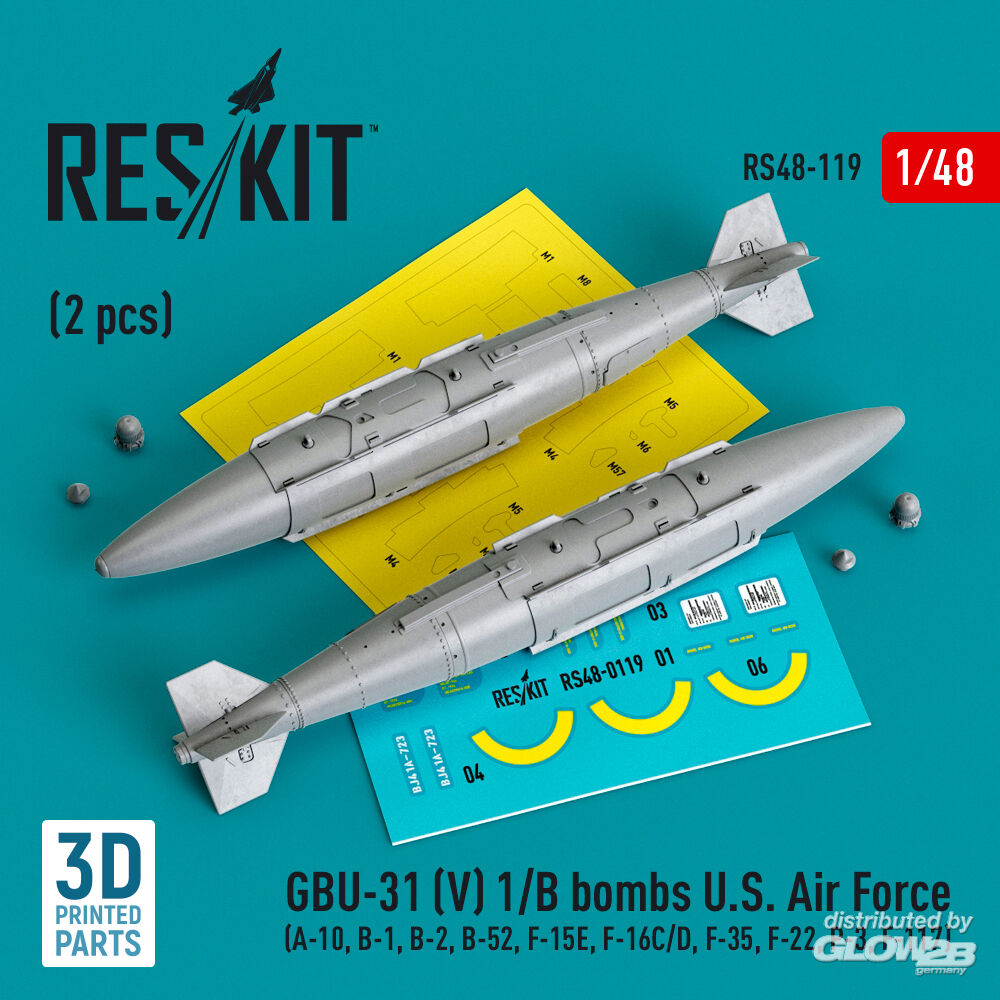 ResKit Models: GBU-31 (V) 1/B bombs U.S. Air Force (2 pcs) (A-10, B-1, B-2, B-52, F-15E, F-16C/D, F-35, F-22, P-3, F-117) (3D Printed) in 1:48 [4594101198]