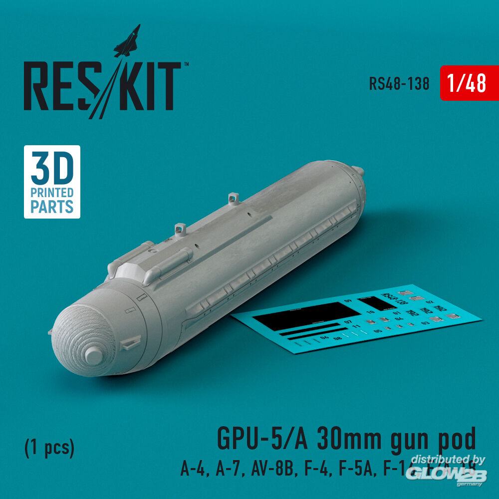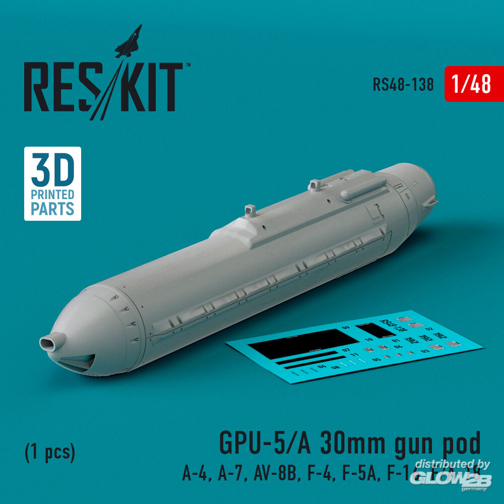 ResKit Models: GPU-5/A 30mm gun pod (1 pcs) (A-4, A-7, AV-8B, F-4, F-5A, F-16, F/A-18) (3D Printed) in 1:48 [4594101389]