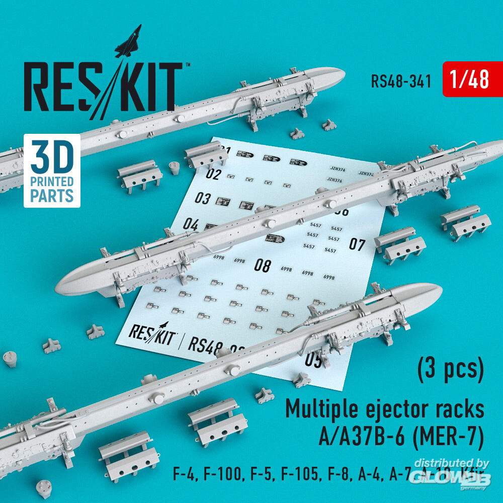 ResKit Models: Multiple ejector racks A/A37B-6 (MER-7) (3 pcs) (F-4, F-100, F-5, F-105, F-8, A-4, A-7, A-10, Kfir) (3D Printed) in 1:48 [4594103413]