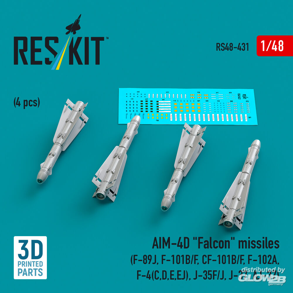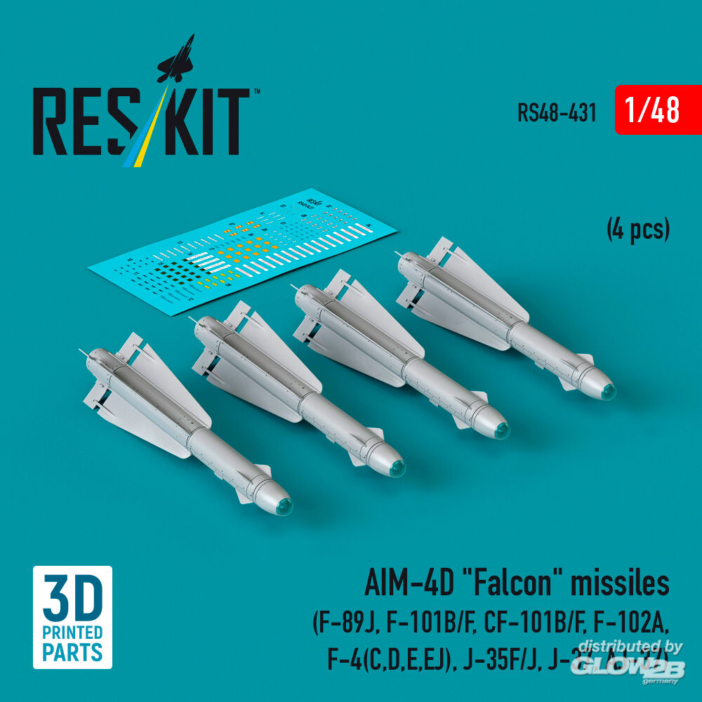 ResKit Models: AIM-4D Falcon missiles (4 pcs) (F-89J, F-101B/F, CF-101B/F, F-102A, F-4(C,D,E,EJ), J-35F/J, J-37, AJ-37) (3D Printed) in 1:48 [4594104311]