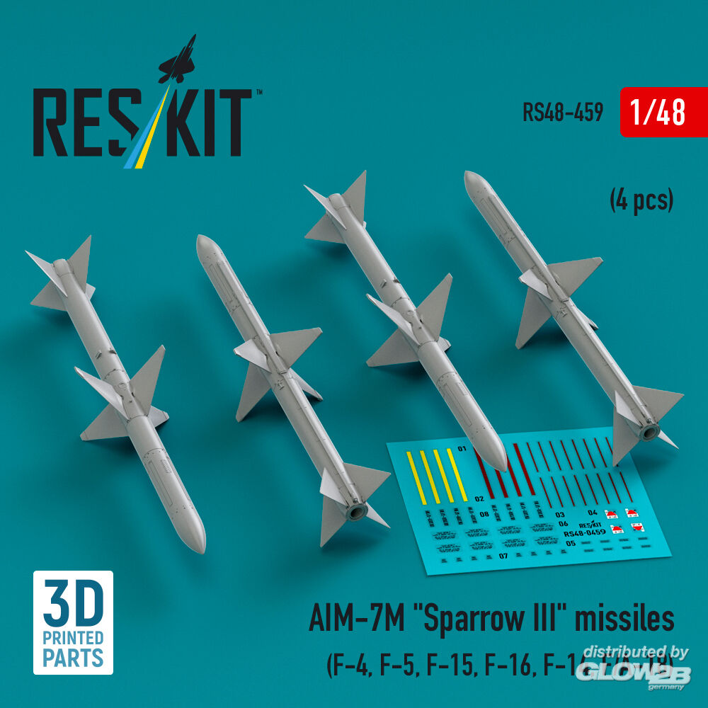 ResKit Models: AIM-7M Sparrow III missiles (4 pcs) (F-4, F-5, F-15, F-16, F-14, F/A-18) (3D Printed) in 1:48 [4594104595]