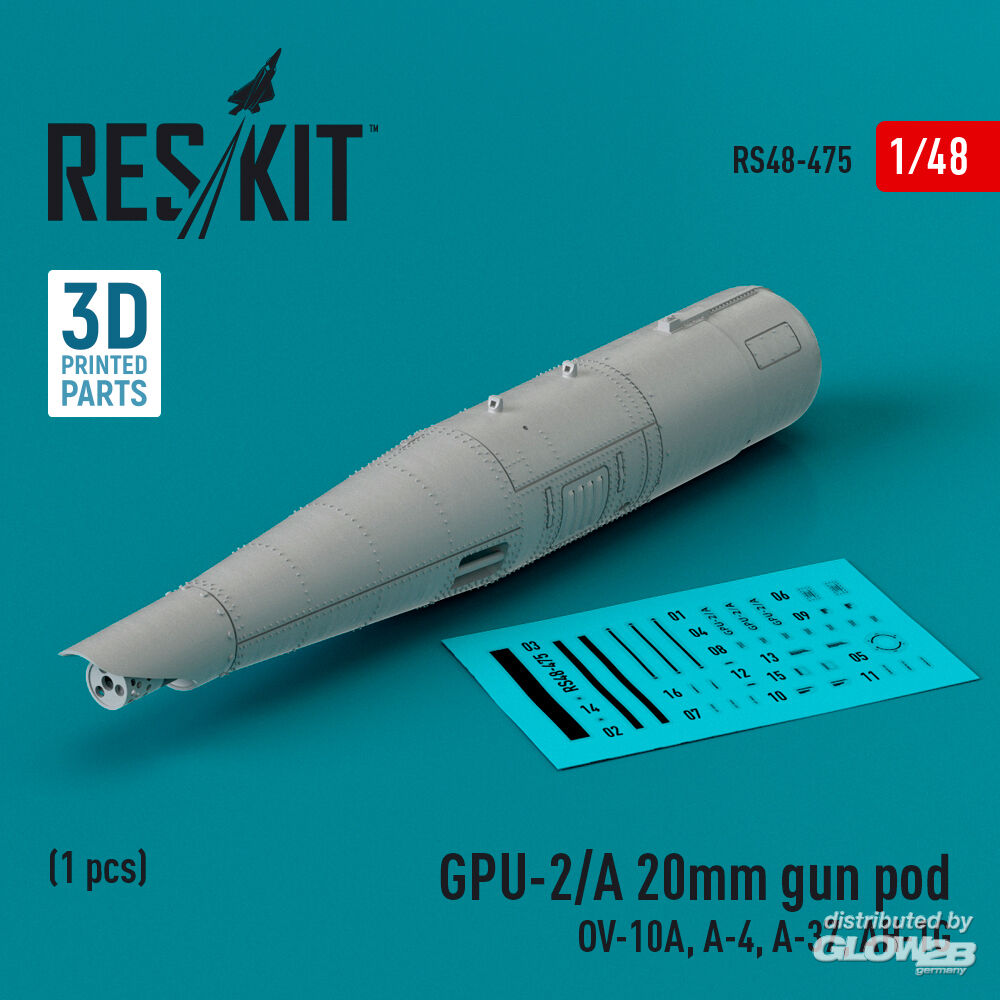 ResKit Models: GPU-2/A 20mm gun pod (1 pcs) (OV-10A, A-4, A-37, AH-1G) (3D Printed) in 1:48 [4594104755]