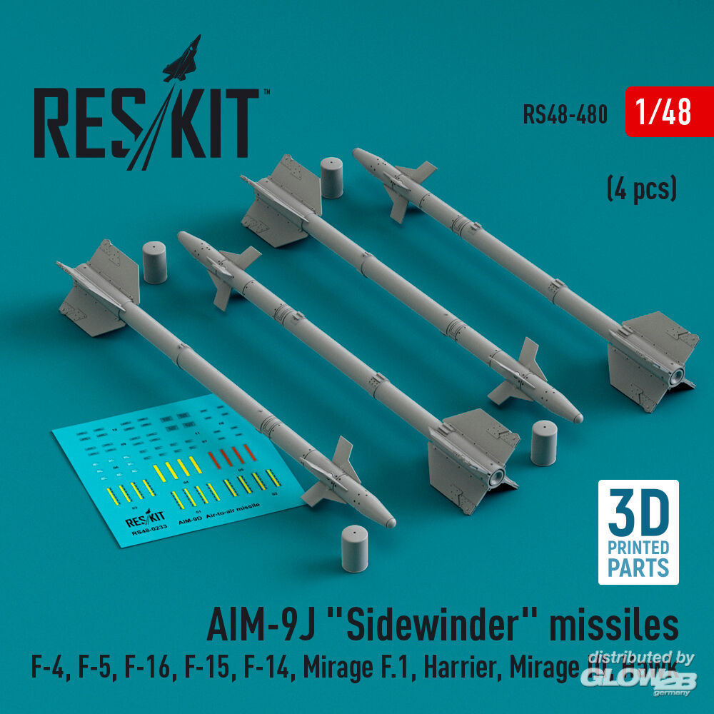 ResKit Models: AIM-9J Sidewinder missiles (4 pcs) (F-4, F-5, F-16, F-15, F-14, Mirage F.1, Harrier, Mirage III, Hawk) (3D Printed) in 1:48 [4594104809]