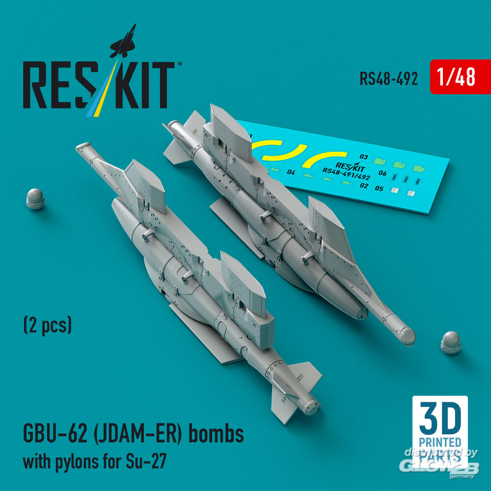 ResKit Models: GBU-62 (JDAM-ER) bombs with pylons for Su-27 Flanker (2 pcs) (3D Printed) in 1:48 [4594104922]
