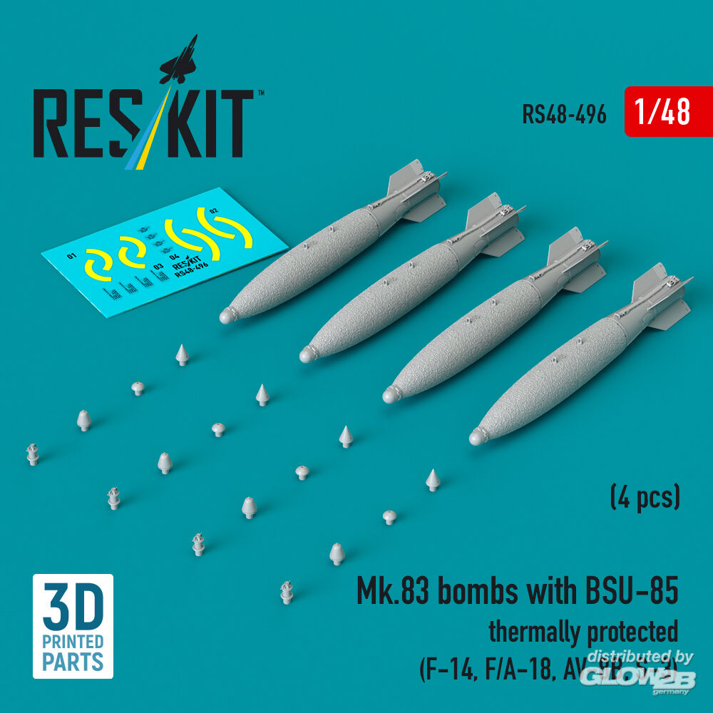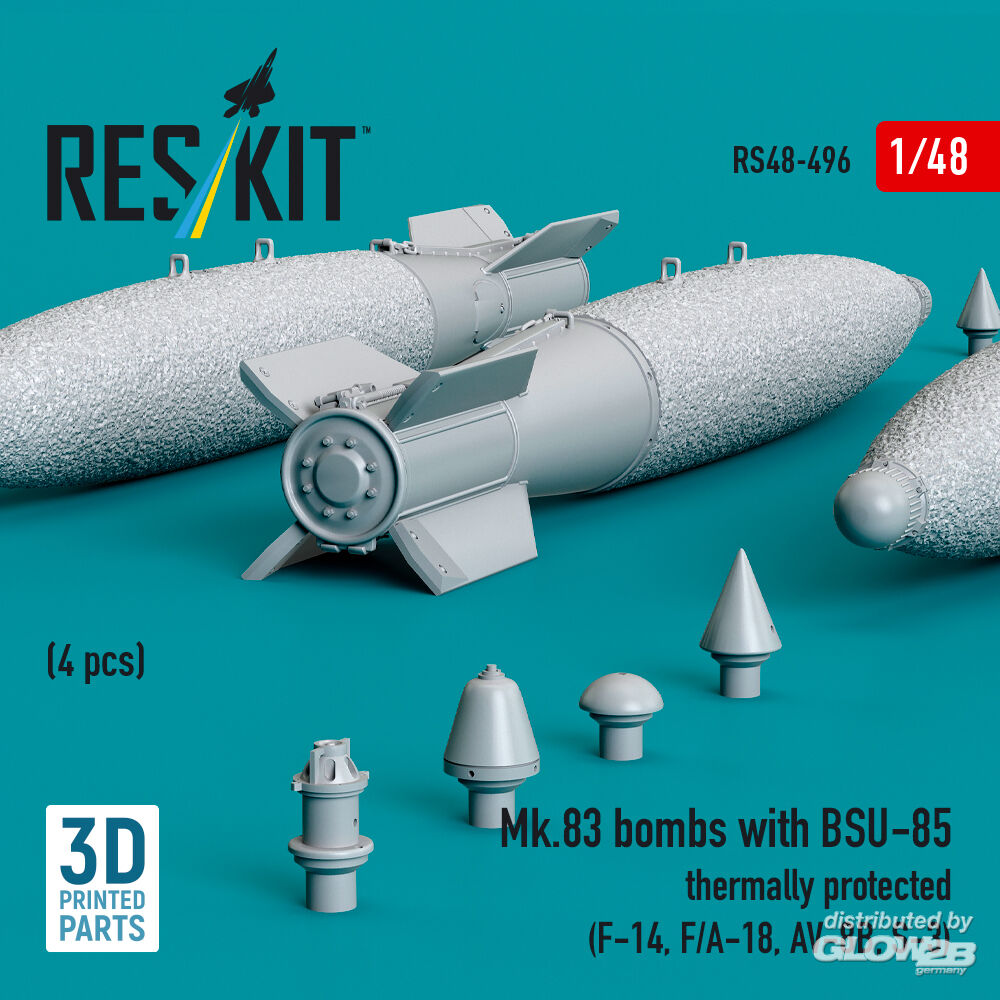 ResKit Models: Mk.83 bombs with BSU-85 thermally protected (4 pcs) (F-14, F/A-18, AV-8B, S-3) (3D printed) in 1:48 [4594104960]