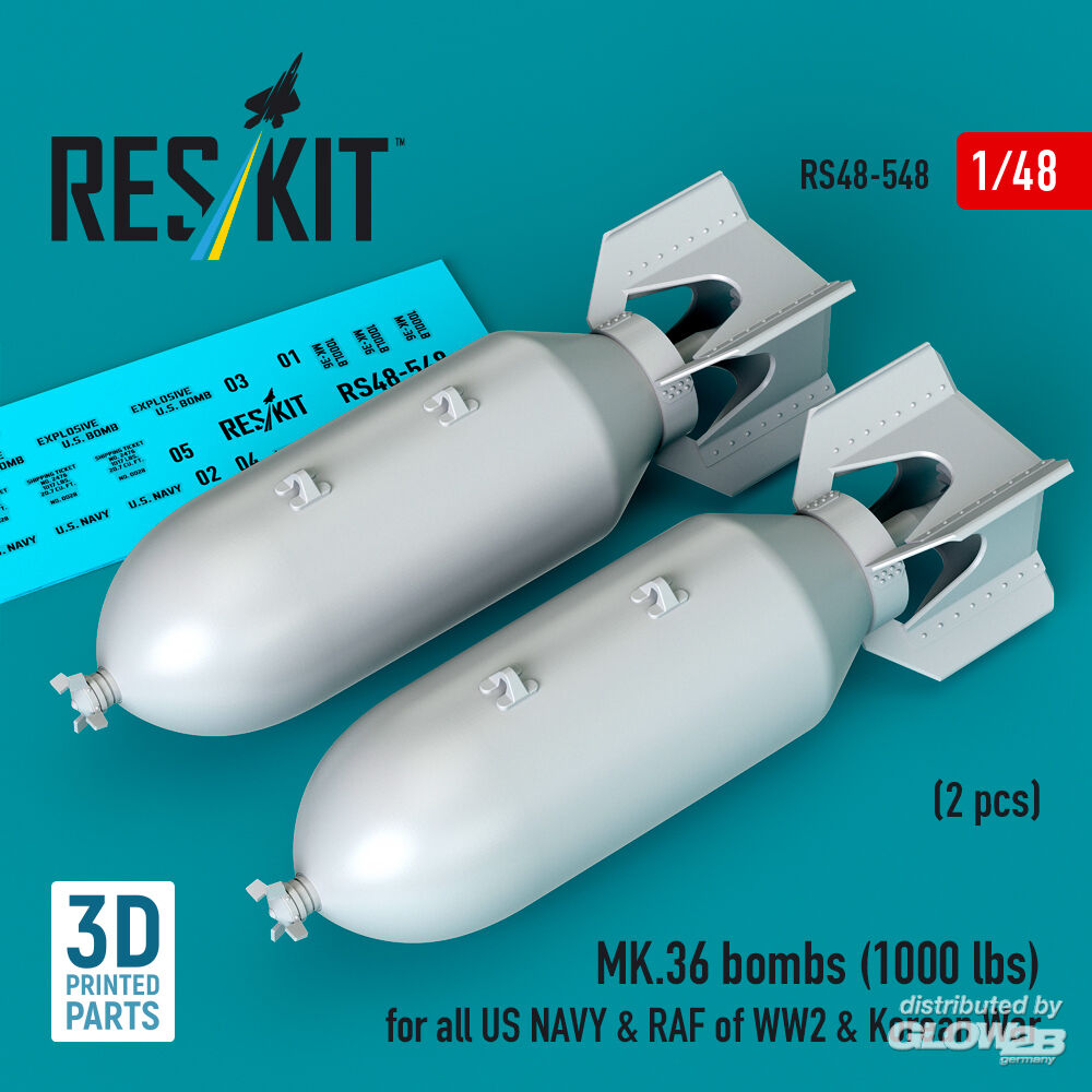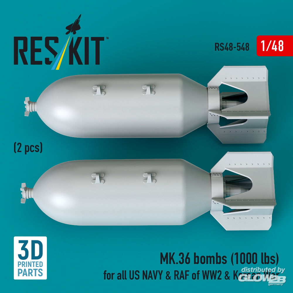 ResKit Models: MK.36 bombs (2 pcs) (1000 lbs) for all US NAVY & RAF of WW2 & Korean War (3D Printed) in 1:48 [4594105486]