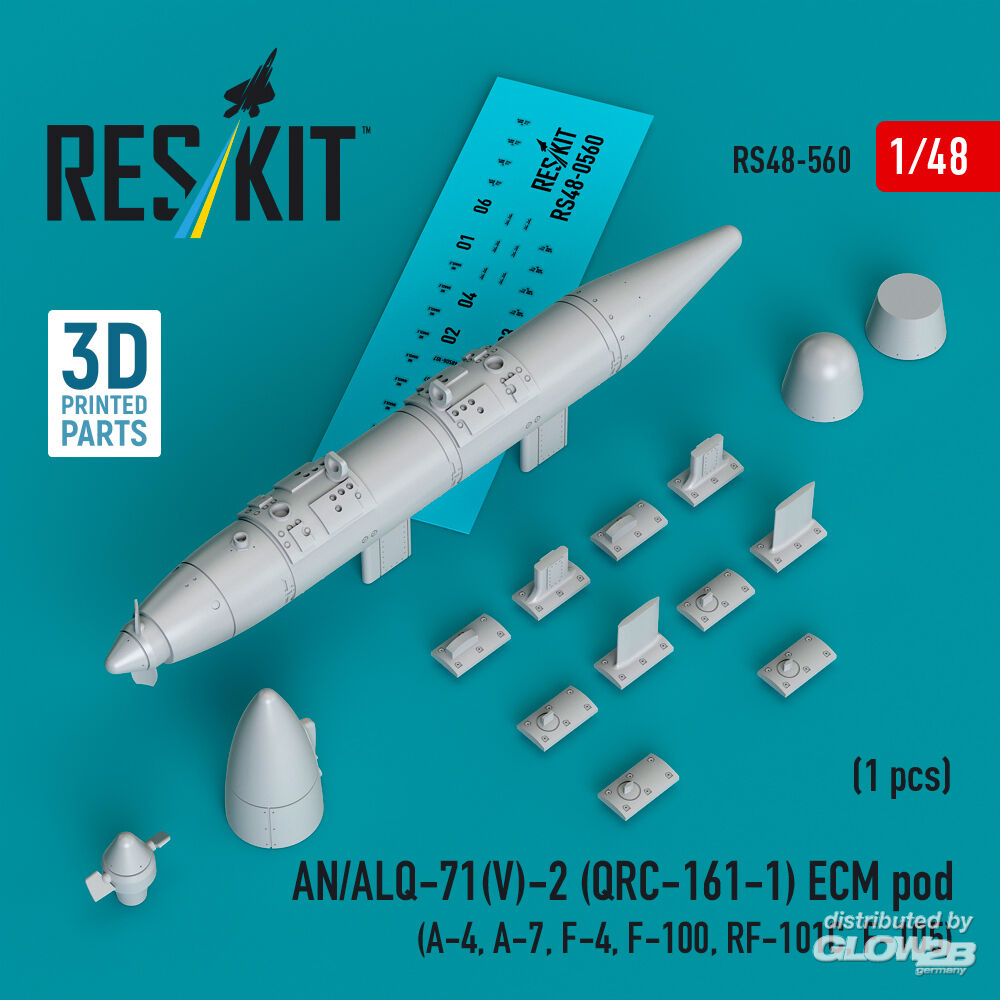 ResKit Models: AN/ALQ-71(V)-2 (QRC-161-1) ECM pod (1pcs) (A-4, A-7, F-4, F-100, RF-101C, F-105) (3D Printed) in 1:48 [4594105608]