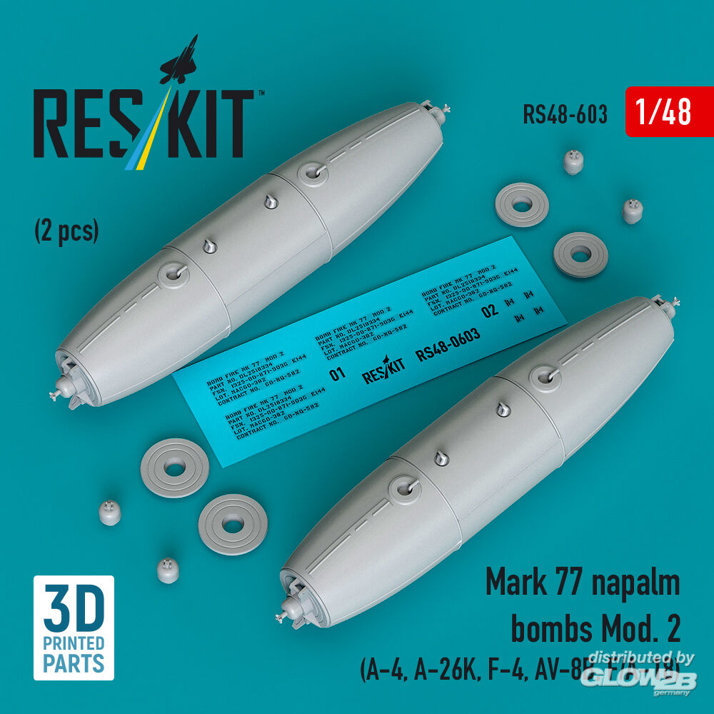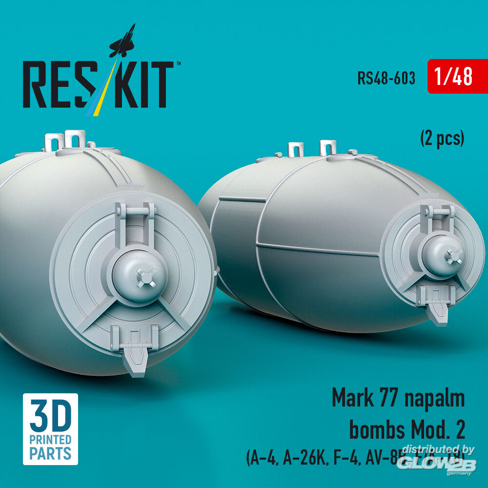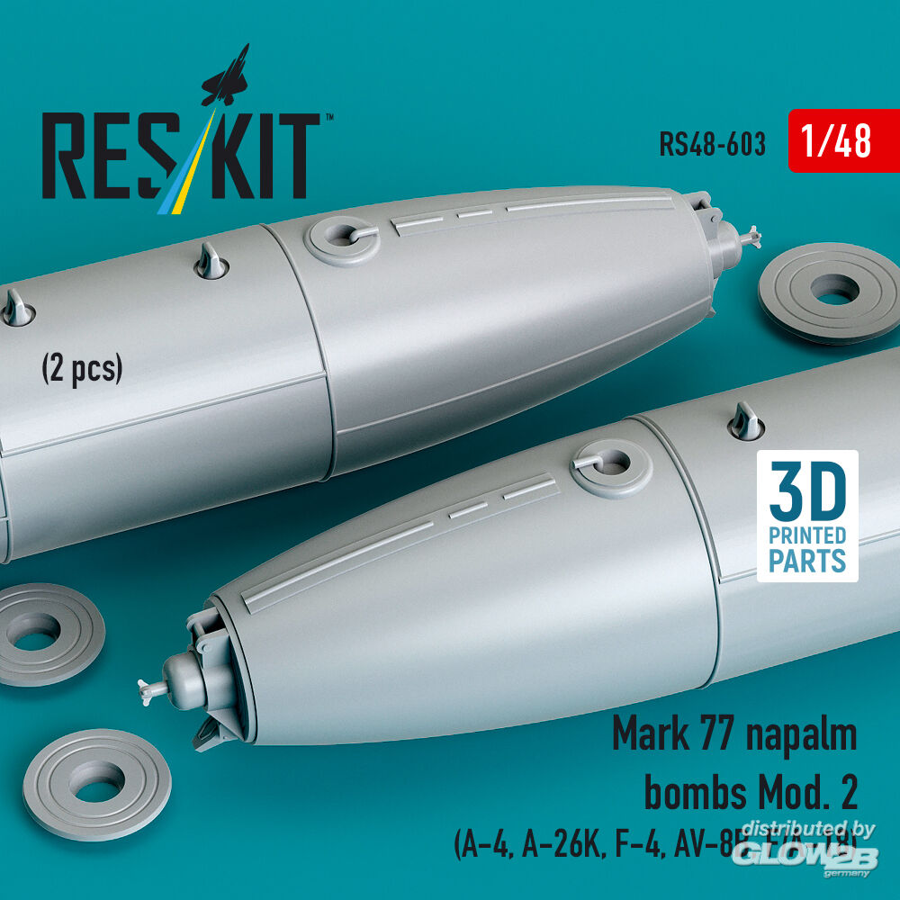 ResKit Models: Mark 77 napalm bombs Mod. 2 (2pcs) (A-4, A-26K, F-4, AV-8B, F/A-18) (3D Printed) in 1:48 [4594106032]
