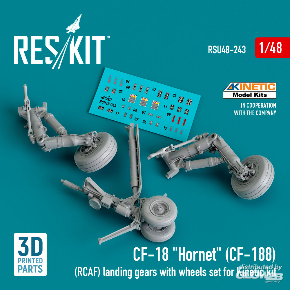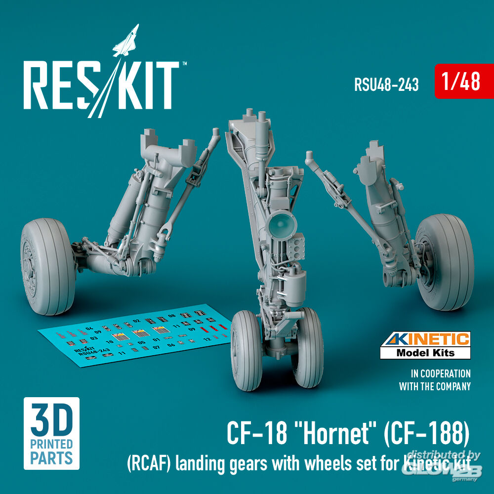 ResKit Models: CF-18 Hornet (CF-188) (RCAF) landing gears with wheels set for Kinetic kit (3D Printed) in 1:48 [4594202437]