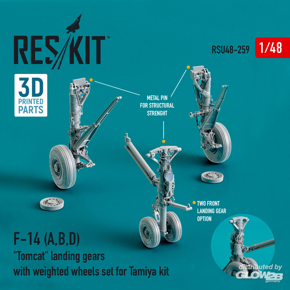 ResKit Models: F-14 (A,B,D) Tomcat landing gears with weighted wheels set for Tamiya kit (Resin & 3D Printed) in 1:48 [4594202598]