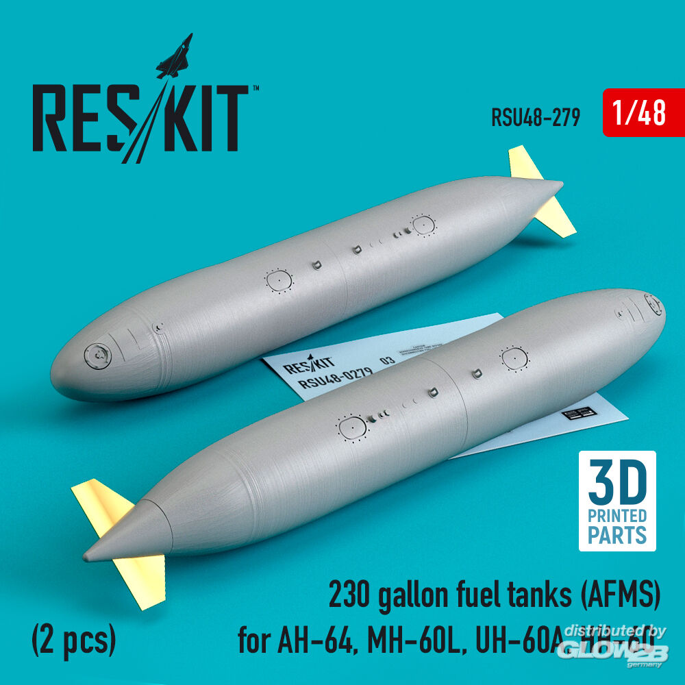 ResKit Models: 230 gallon fuel tanks (AFMS) for AH-64, MH-60L, UH-60A, HH-60 (2 pcs) (3D Printed) in 1:48 [4594202796]