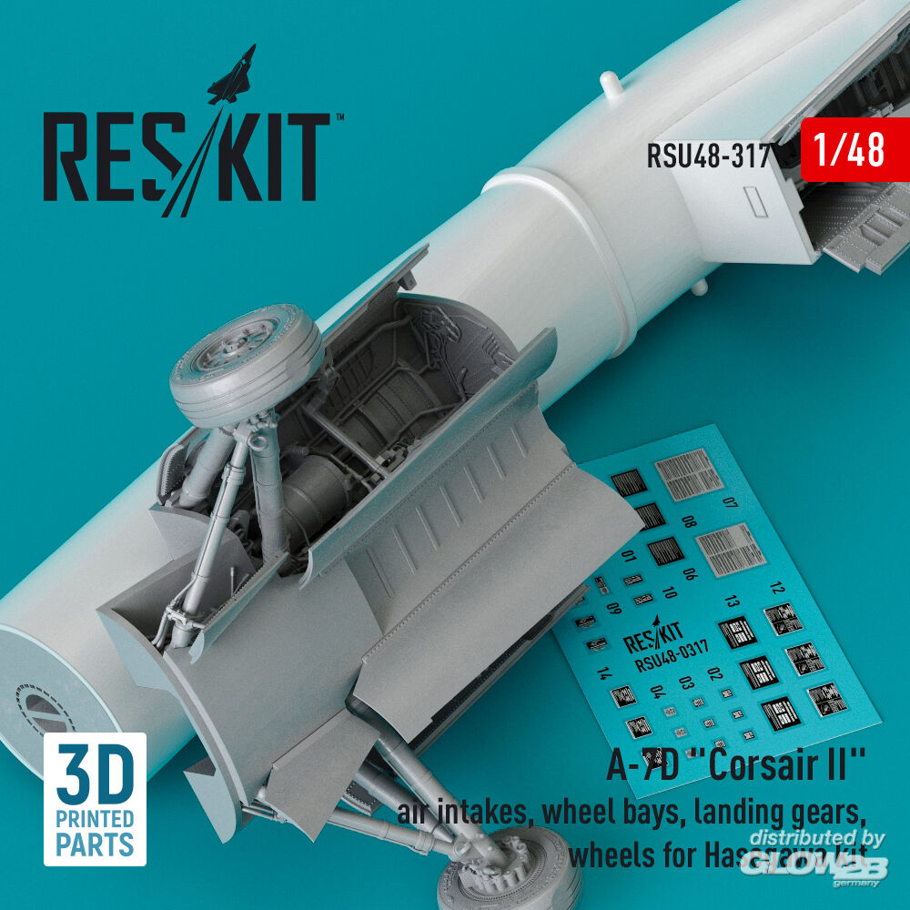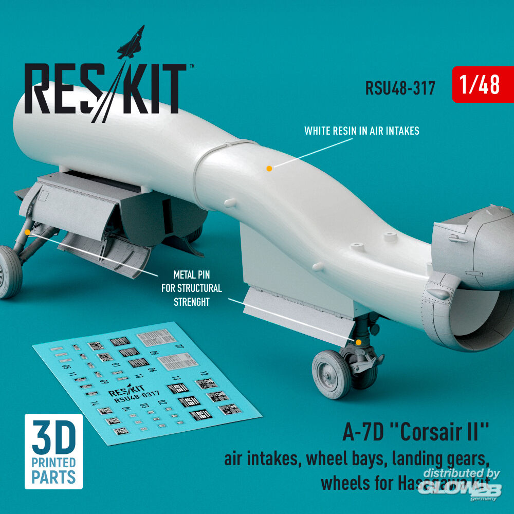 ResKit Models: A-7D Corsair II air intakes, wheel bays, landing gears, wheels for Hasegawa kit (3D Printed) in 1:48 [4594203175]