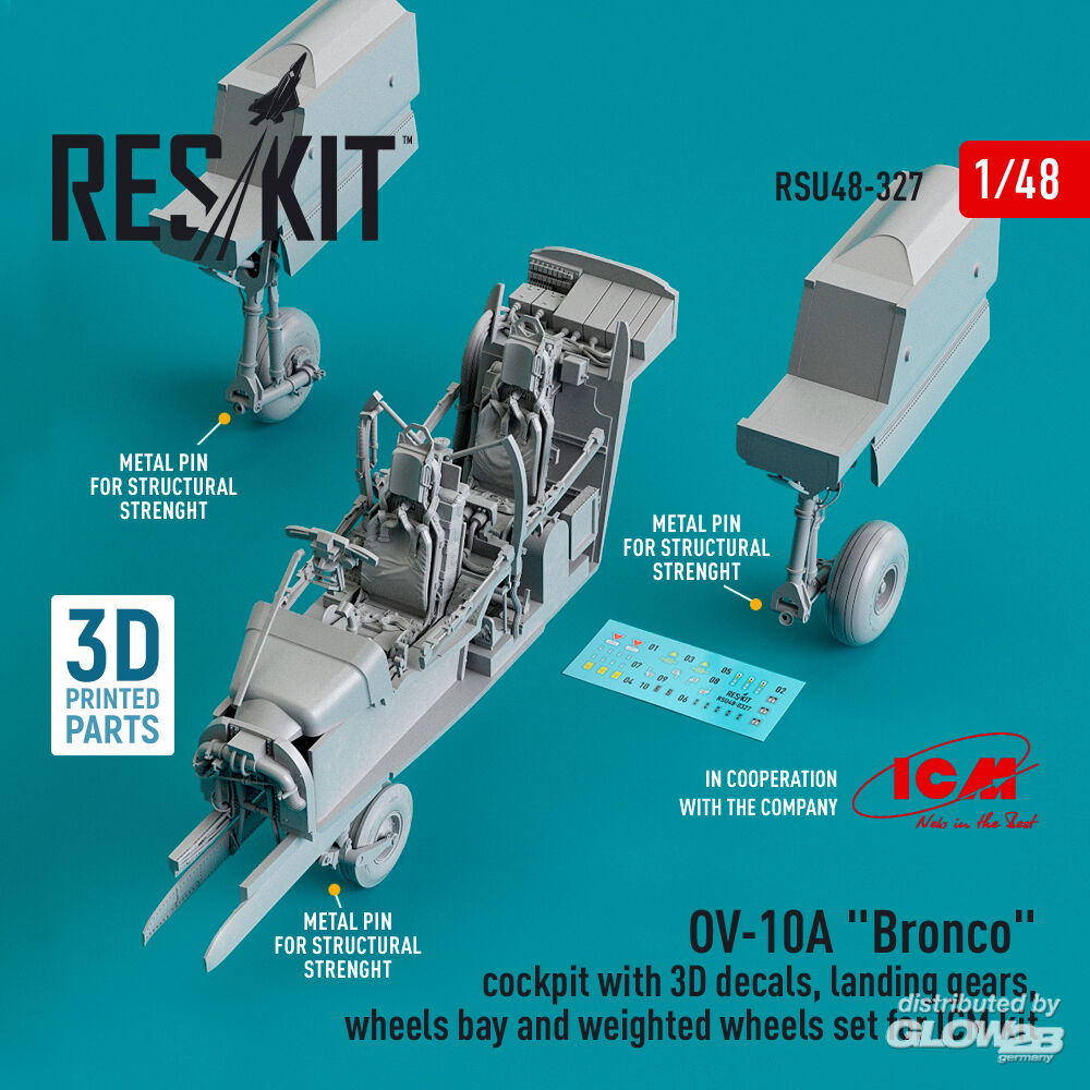 ResKit Models: OV-10A Bronco cockpit, landing gears, wheels bay and weighted wheels set for ICM kit (3D Printed) in 1:48 [4594203274]