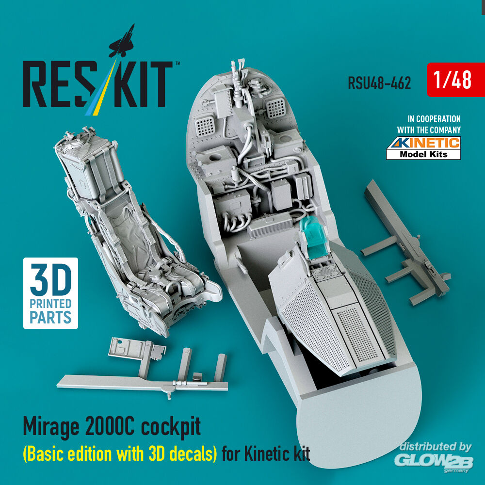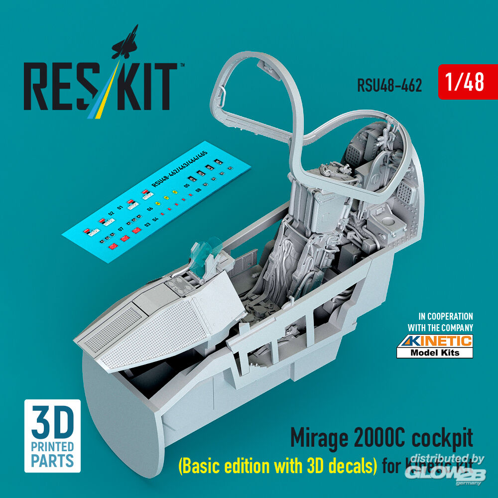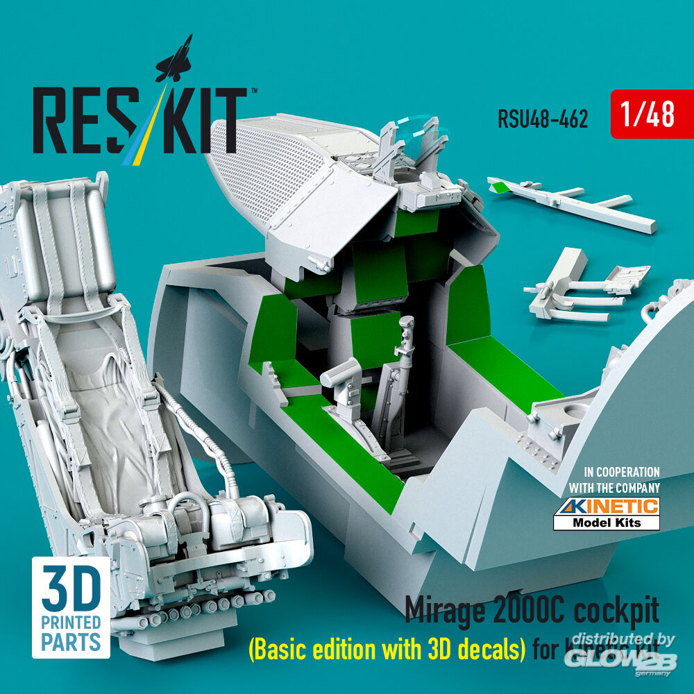 ResKit Models: Mirage 2000C cockpit (Basic edition with 3D decals) for Kinetic kit (3D Printed) in 1:48 [4594204622]
