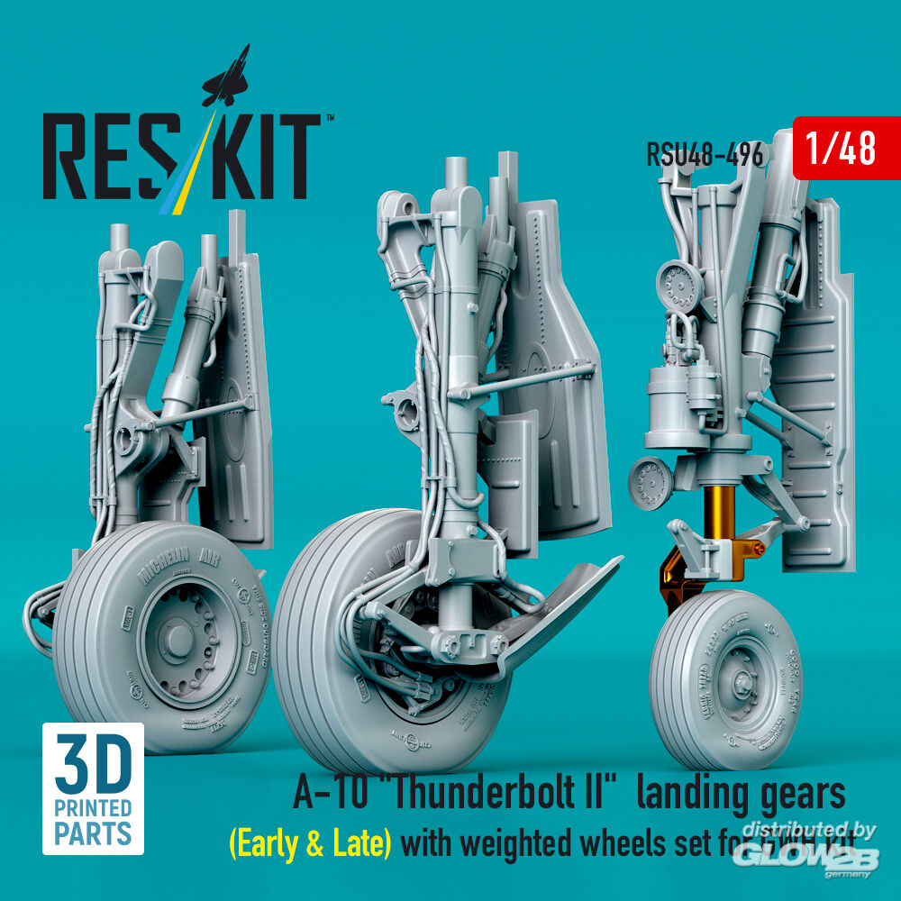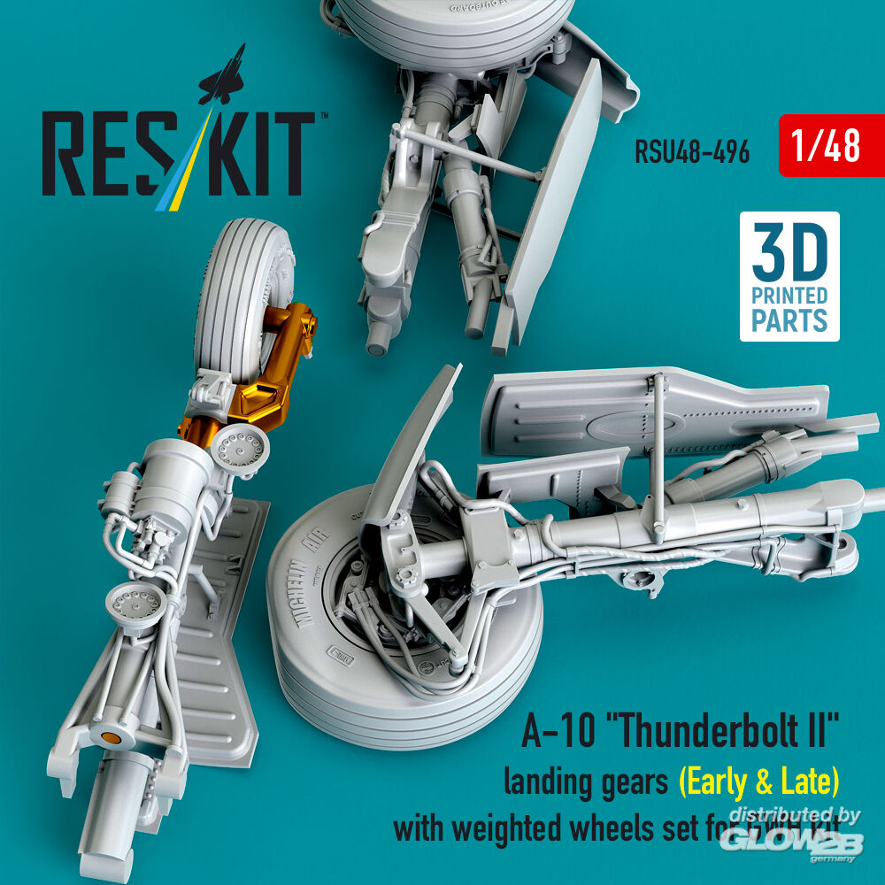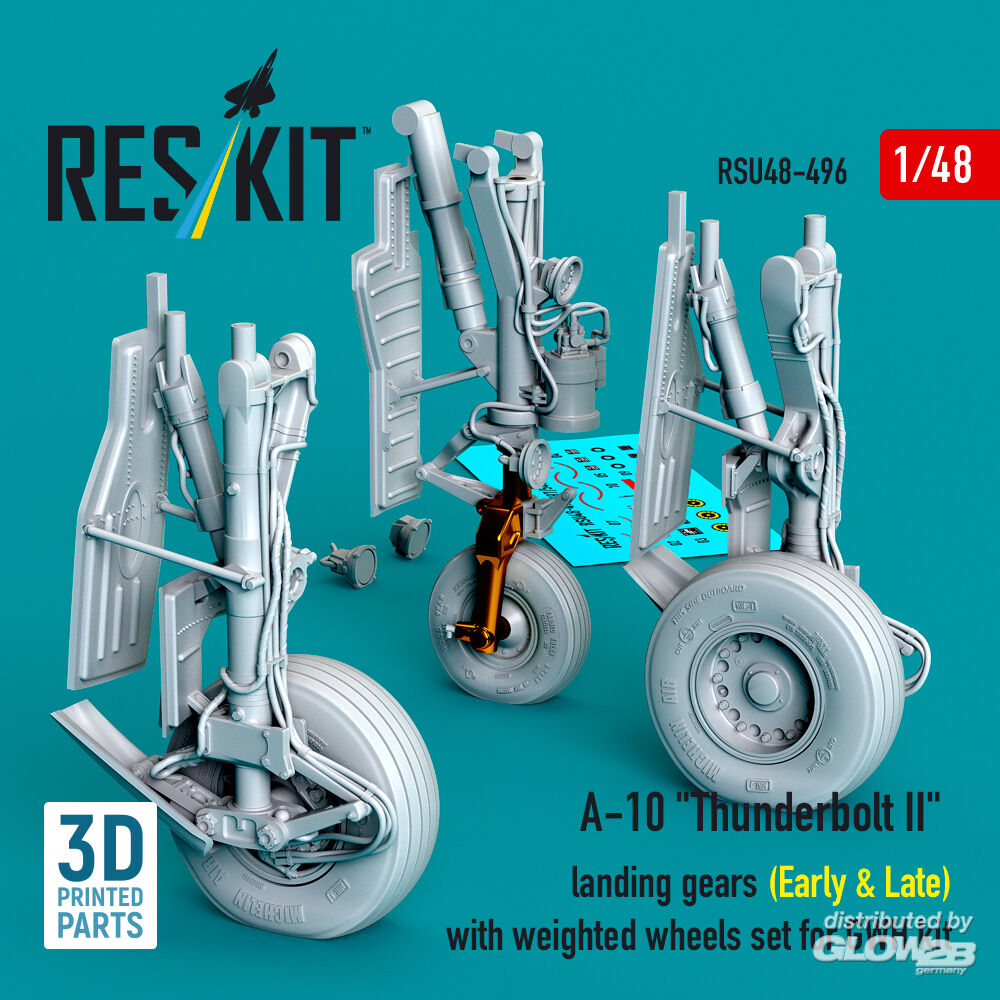 ResKit Models: A-10 Thunderbolt II landing gears (Early & Late) with weighted wheels set for GWH kit (Metal+3D Printed) in 1:48 [4594204967]
