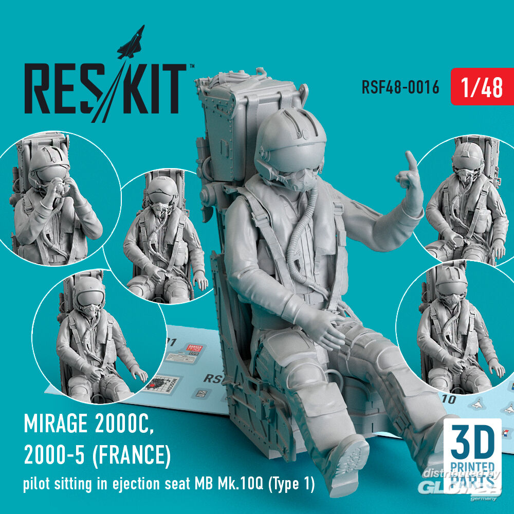 ResKit Models: Mirage 2000C, 2000-5 (FRANCE) pilot sitting in ejection seat MB Mk.10Q (Type 1) (3D Printed) in 1:48 [4594300164]