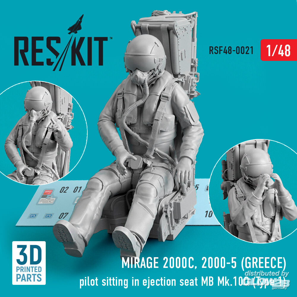 ResKit Models: Mirage 2000C, 2000-5 (GREECE) pilot sitting in ejection seat MB Mk.10Q (Type 1) (3D Printed) in 1:48 [4594300218]