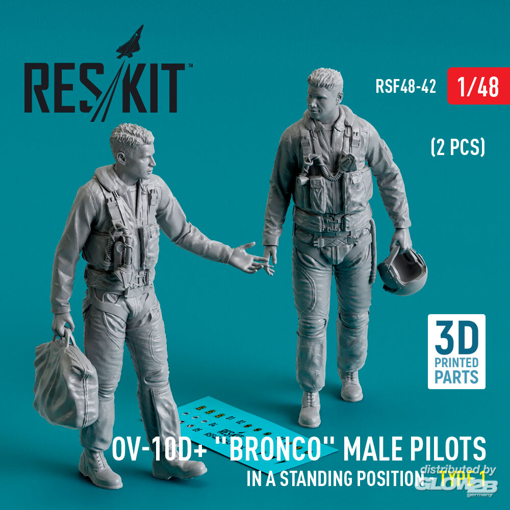 ResKit Models: OV-10D+ Bronco male pilots (in a standing position - type 1) (2 pcs) (3D Printed) in 1:48 [4594300423]