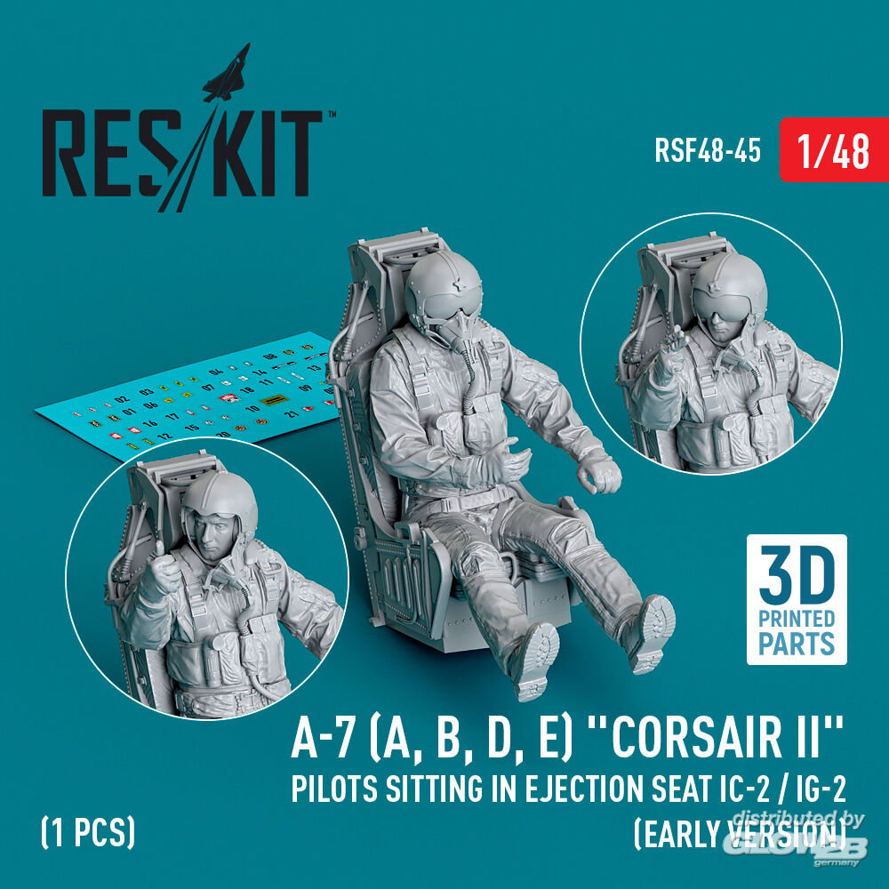 ResKit Models: A-7 (A, B, D, E) Corsair II pilots sitting in ejection seat IC-2 / IG-2 (early version) (3D Printed) (1 pcs) in 1:48 [4594300454]