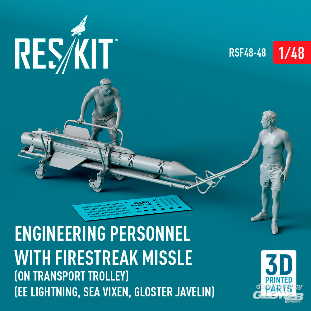ResKit Models: Engineering Personnel with Firestreak missile (on transport trolley) (EE Lightning, Sea Vixen, Gloster Javelin) (1 pcs) (3D Printed) in 1:48 [4594300485]