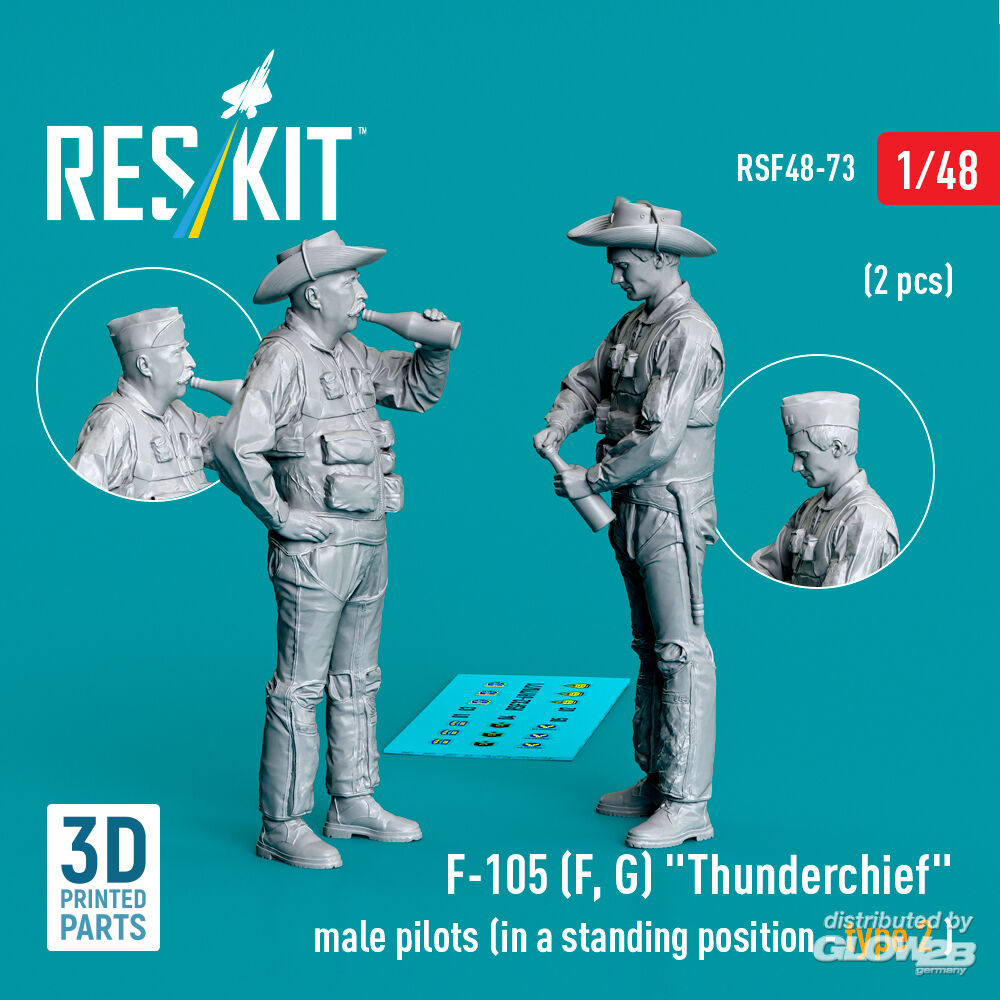 ResKit Models: F-105 (F, G) Thunderchief male pilots (in a standing position - type 2) (2 pcs) (3D Printed) in 1:48 [4594300737]