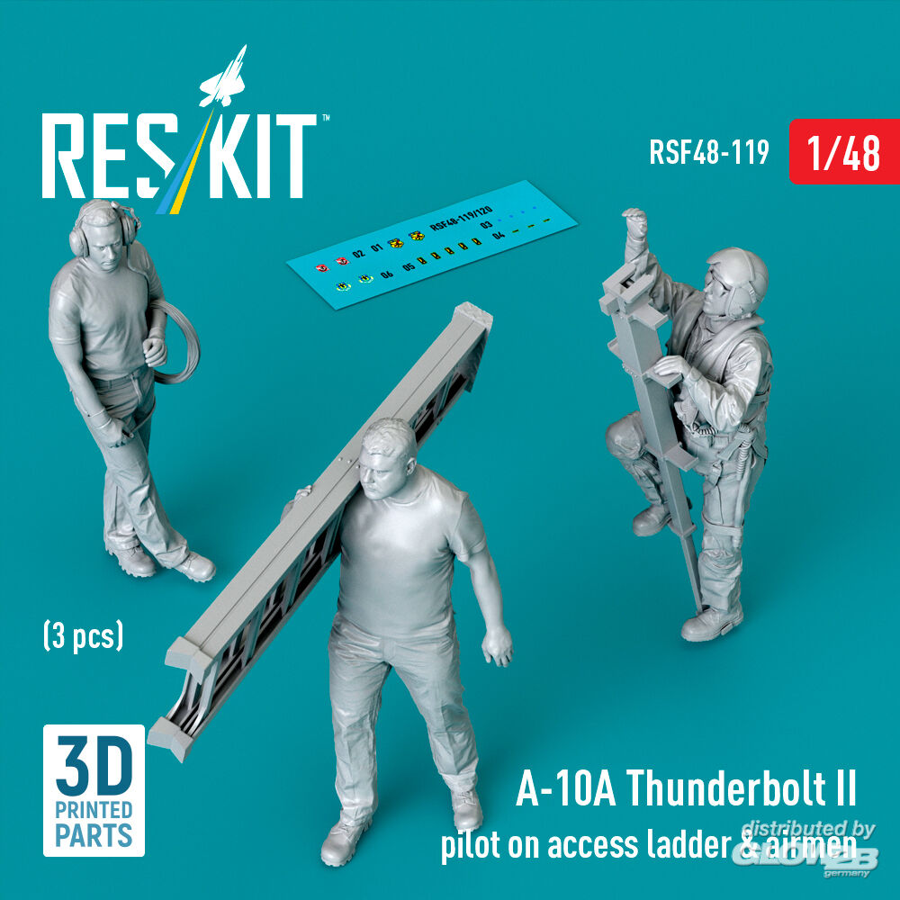 ResKit Models: A-10A Thunderbolt II pilot on access ladder & airmen (3 pcs) (3D Printed) in 1:48 [4594301192]