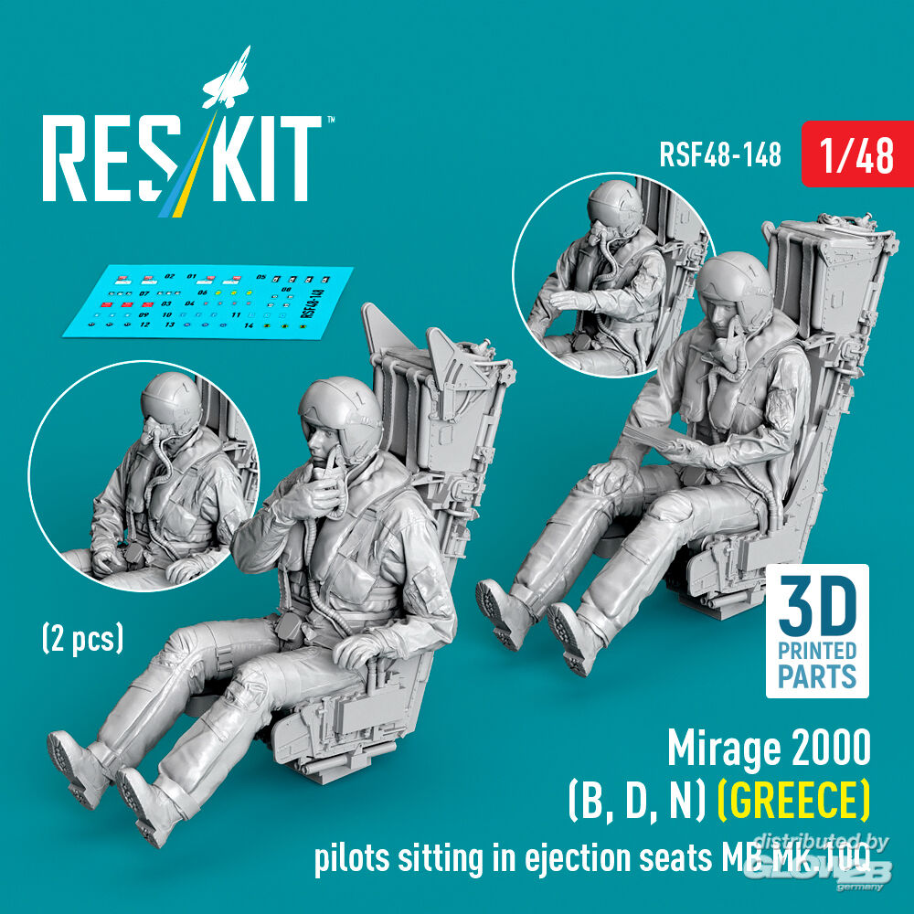 ResKit Models: Mirage 2000 (B, D, N) (GREECE) pilots sitting in ejection seats MB Mk.10Q (2 pcs) (3D Printed) in 1:48 [4594301482]