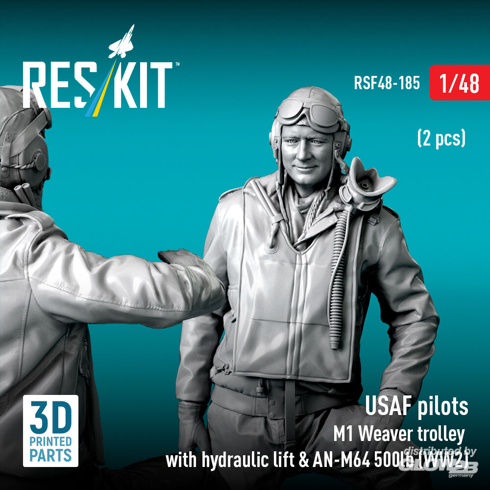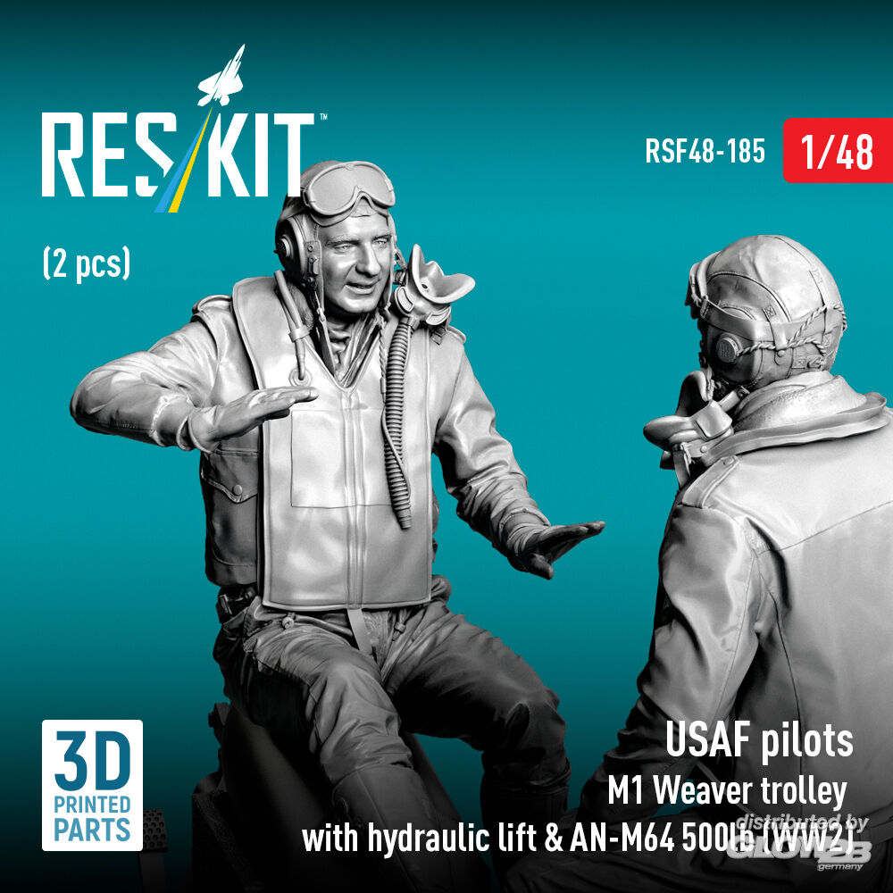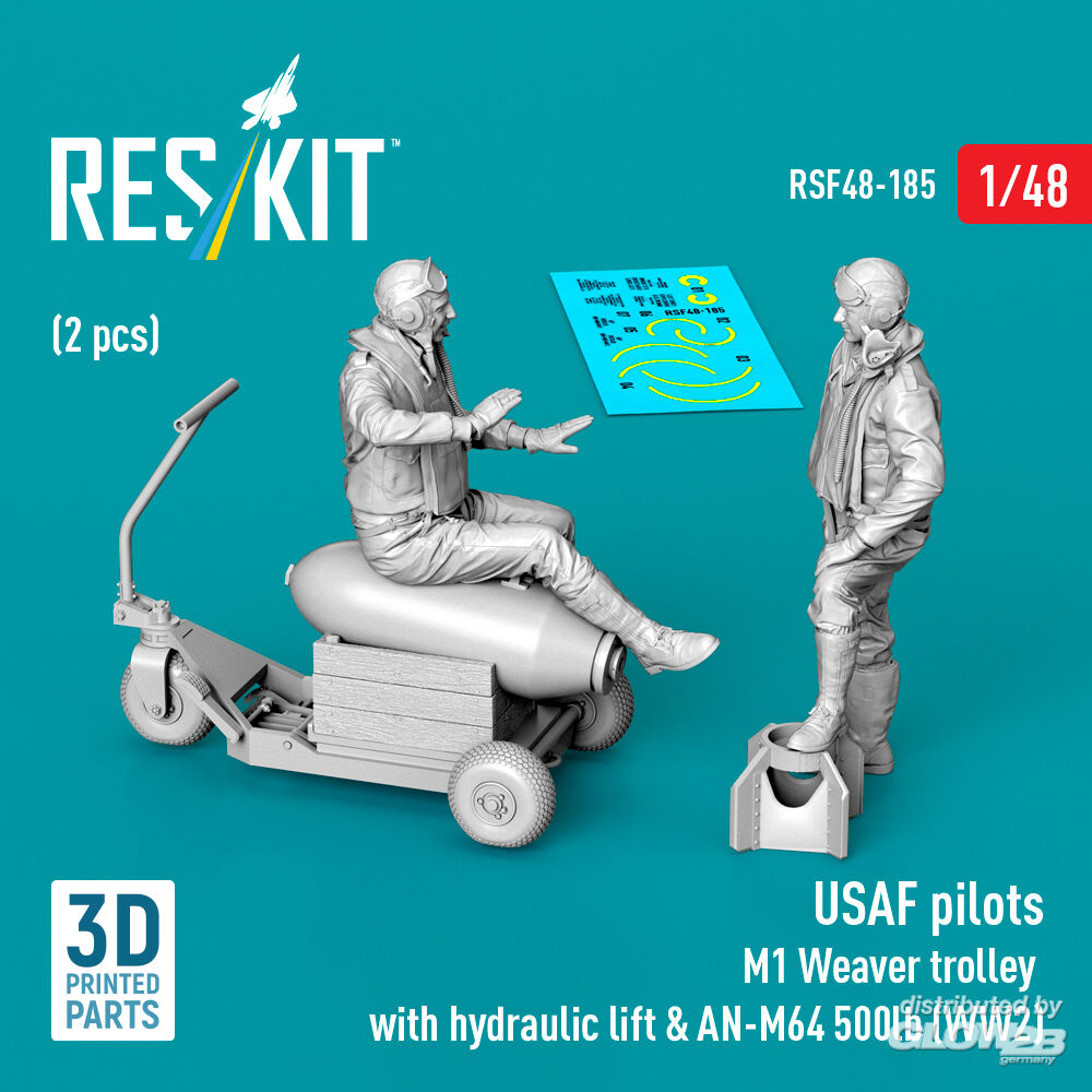 ResKit Models: USAF pilots (2 pcs) & M1 Weaver trolley with hydraulic lift & AN-M64 500lb (WW2) (3D Printed) in 1:48 [4594301857]