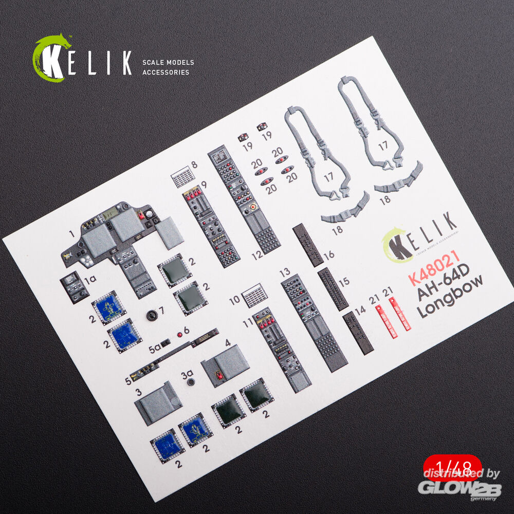 Kelik: AH-64D Apache longbow interior 3D decals for Hasegawa kit in 1:48 [4594500212]