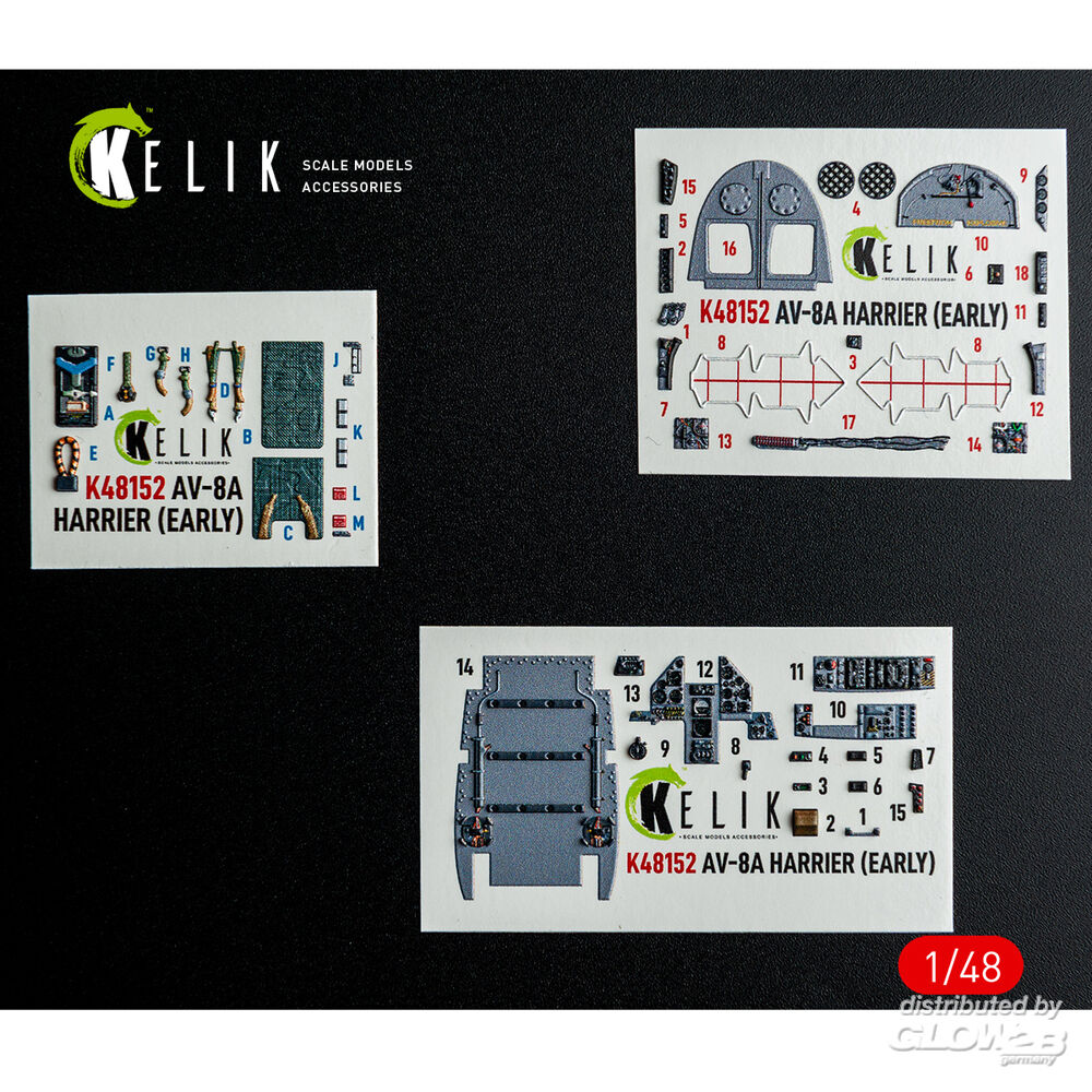 Kelik: AV-8A HARRIER (Early) - interior 3D decals for Kinetic kit in 1:48 [4594501646]