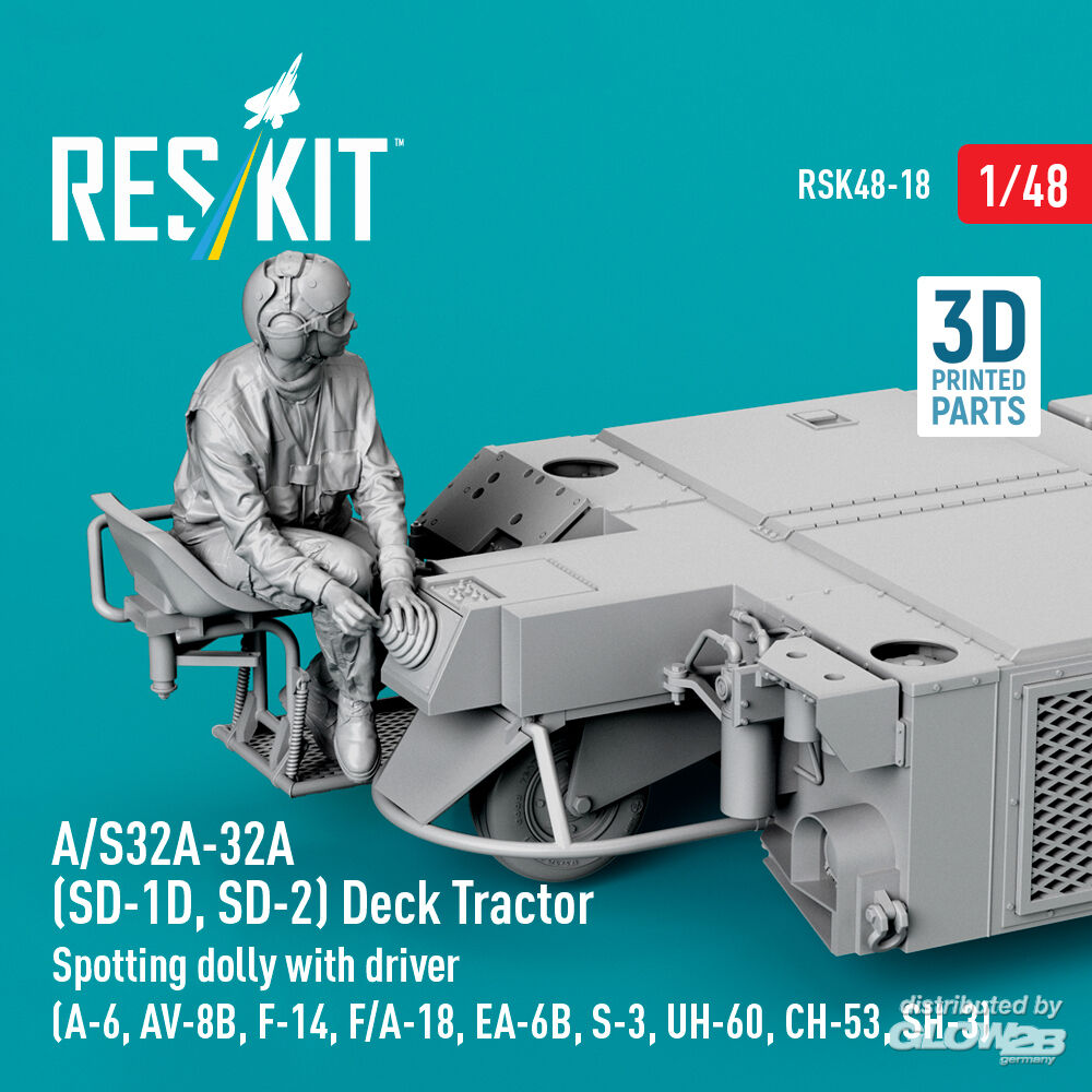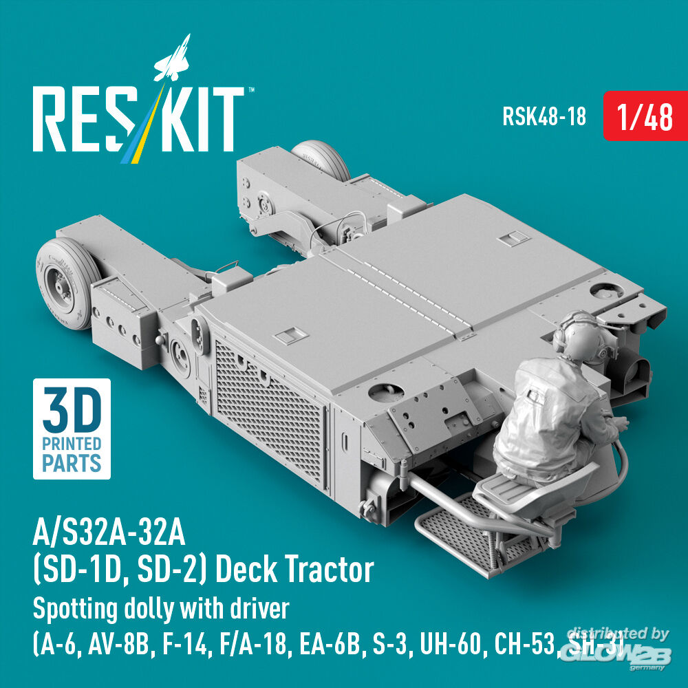 ResKit Models: A/S32A-32A (SD-1D, SD-2) Deck Tractor Spotting dolly with driver (A-6, AV-8B, F-14, F/A-18, EA-6B, S-3, UH-60, CH-53, SH-3) (3D Printed model kit) in 1:48 [4594700186]