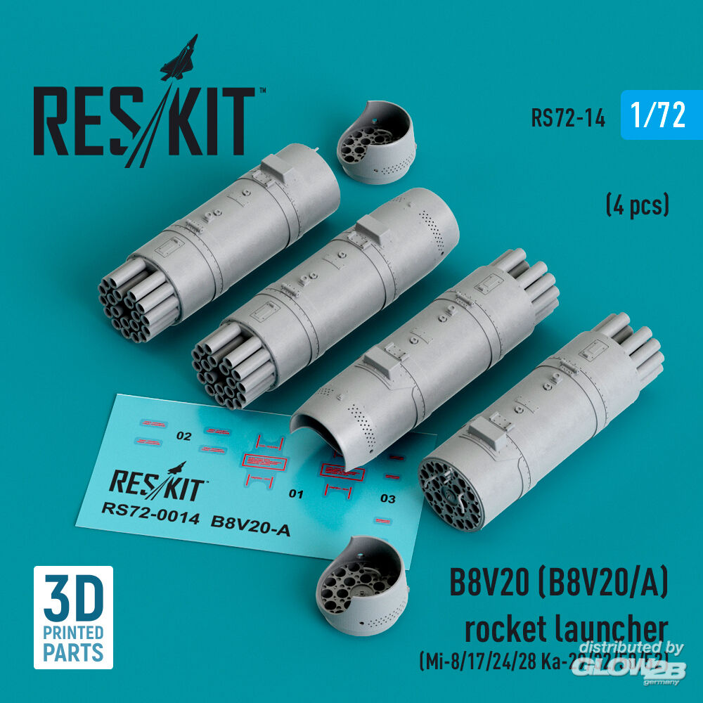 ResKit Models: B8V20-? rocket launchers (4 pcs) (Mi-8/17/24/28, Ka-29/32/50/52) (3D Printed) in 1:72 [4595100145]
