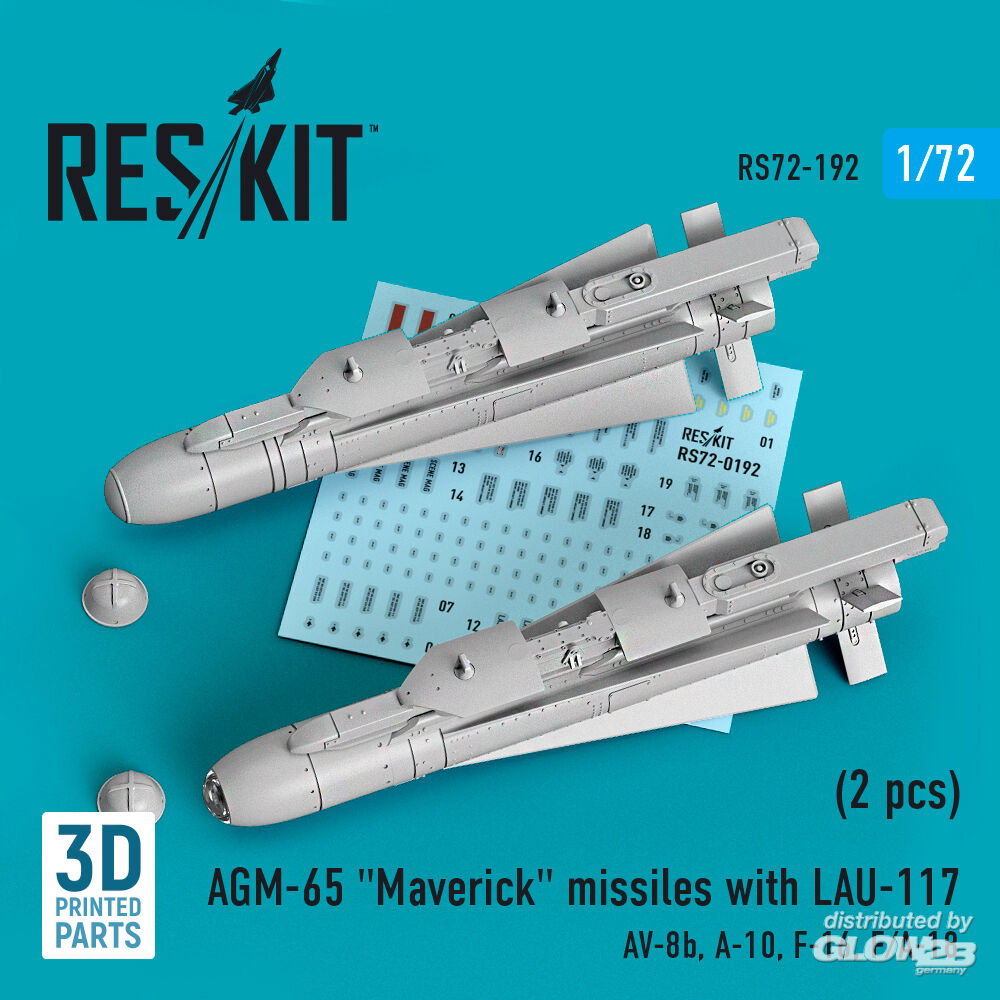 ResKit Models: AGM-65 Maverick missiles with LAU-117 (2 pcs) (AV-8B, A-10, F-16, F/A-18) (3D Printed) in 1:72 [4595101920]
