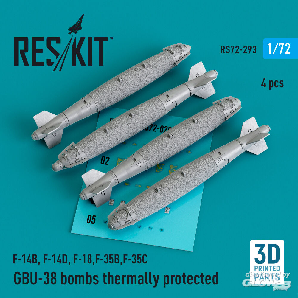 ResKit Models: GBU-38 bombs thermally protected (4 pcs) (F-14B, F-14D, F-18,F-35B,F-35C) (3D Printed) in 1:72 [4595102934]